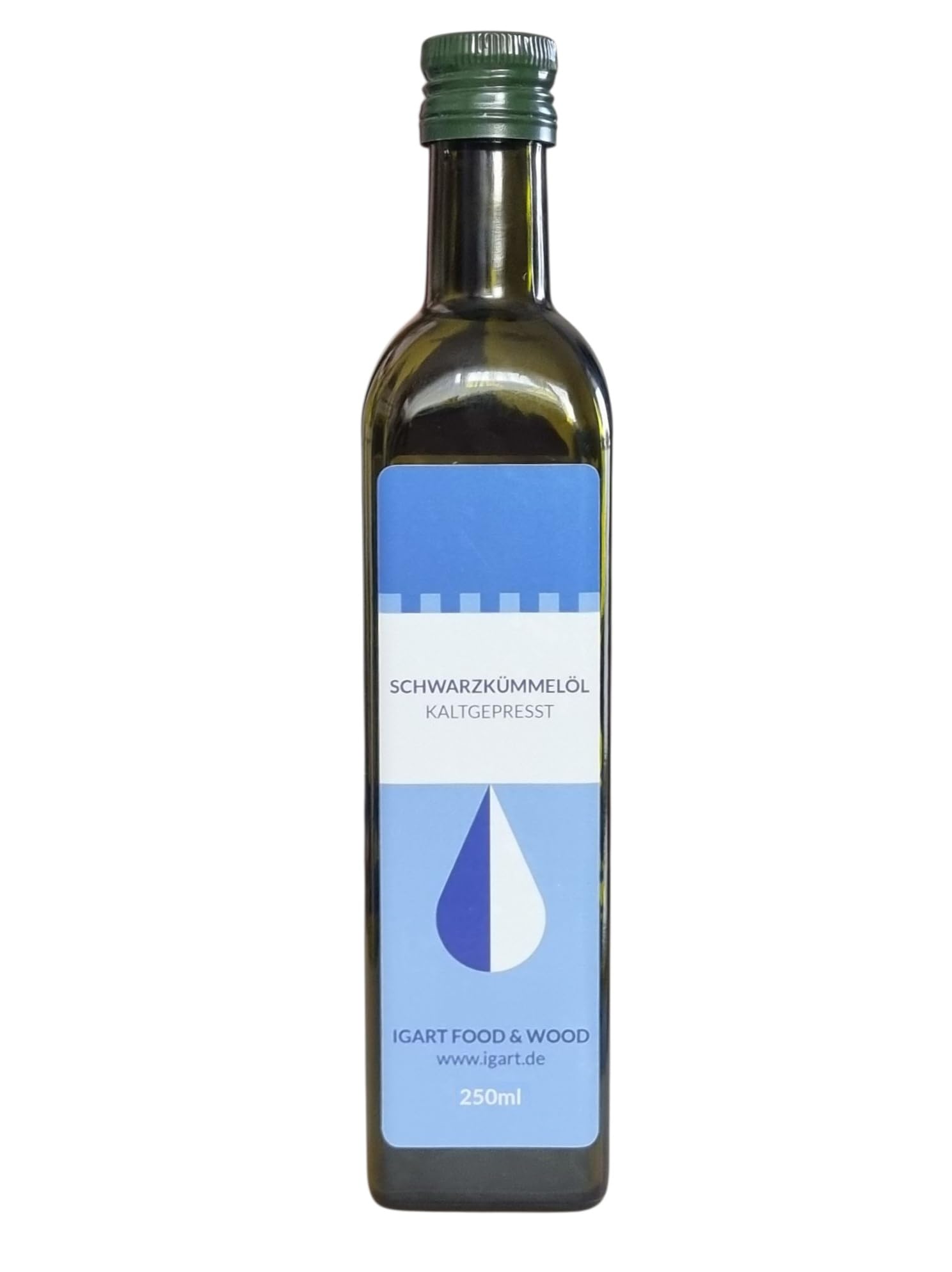 Our black seed oil is obtained by gently cold-pressing carefully selected black seeds. It is unfiltered and unrefined, preserving its natural taste and characteristic color. The oil contains no colorings, preservatives, or other additives. It is particularly suitable for cold cooking, for example, in salads, dressings, or to enhance prepared dishes. The convenient 250 ml bottle is ideal for everyday use. INGREDIENTS Black Seed Oil