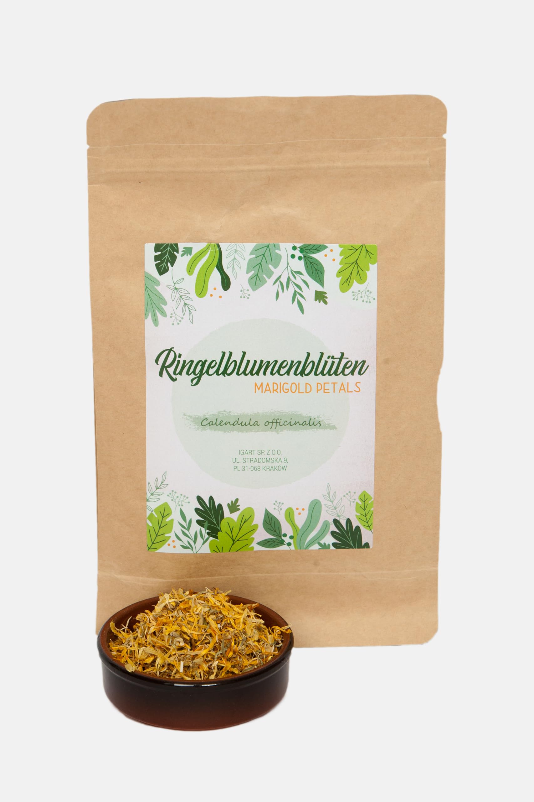 Marigold blossoms are bright orange or yellow flowers with a mild, slightly spicy flavor. They are often used as an edible decoration in salads and other dishes because of their vibrant color and subtle flavor. INGREDIENTS Marigolds INSTRUCTIONS FOR USE To prepare marigold tea, place a teaspoon of dried marigolds in a cup with 250 ml of boiling water, pour over the tea, steep for 10-15 minutes and then strain. The tea can be drunk neat or sweetened with honey if desired. Up to three cups per day are recommended See moreIGART Goudsbloem 200g Goudsbloembloesems Eetbaar Thee Calendula-Thee Oranje Goudsbloem Droogbloemen Calendula Officinalis Kruidenthee Goudsbloembloesems zijn feloranje of gele bloemen met een milde, licht kruidige smaak. Ze worden vaak gebruikt als eetbare decoratie in salades en andere gerechten vanwege hun levendige kleur en subtiele smaak. INGREDIËNTEN Goudsbloemen GEBRUIKSAANWIJZING Doe voor de bereiding van goudsbloemthee een theelepel gedroogde goudsbloemen in een kopje 250 ml kokend water eroverheen giet de thee 10-15 minuten trekken en vervolgens zeefen de thee kan puur gedronken of naar wens met honing worden gezoet. Tot drie kopjes per dag worden aanbevolen Meer bekijken