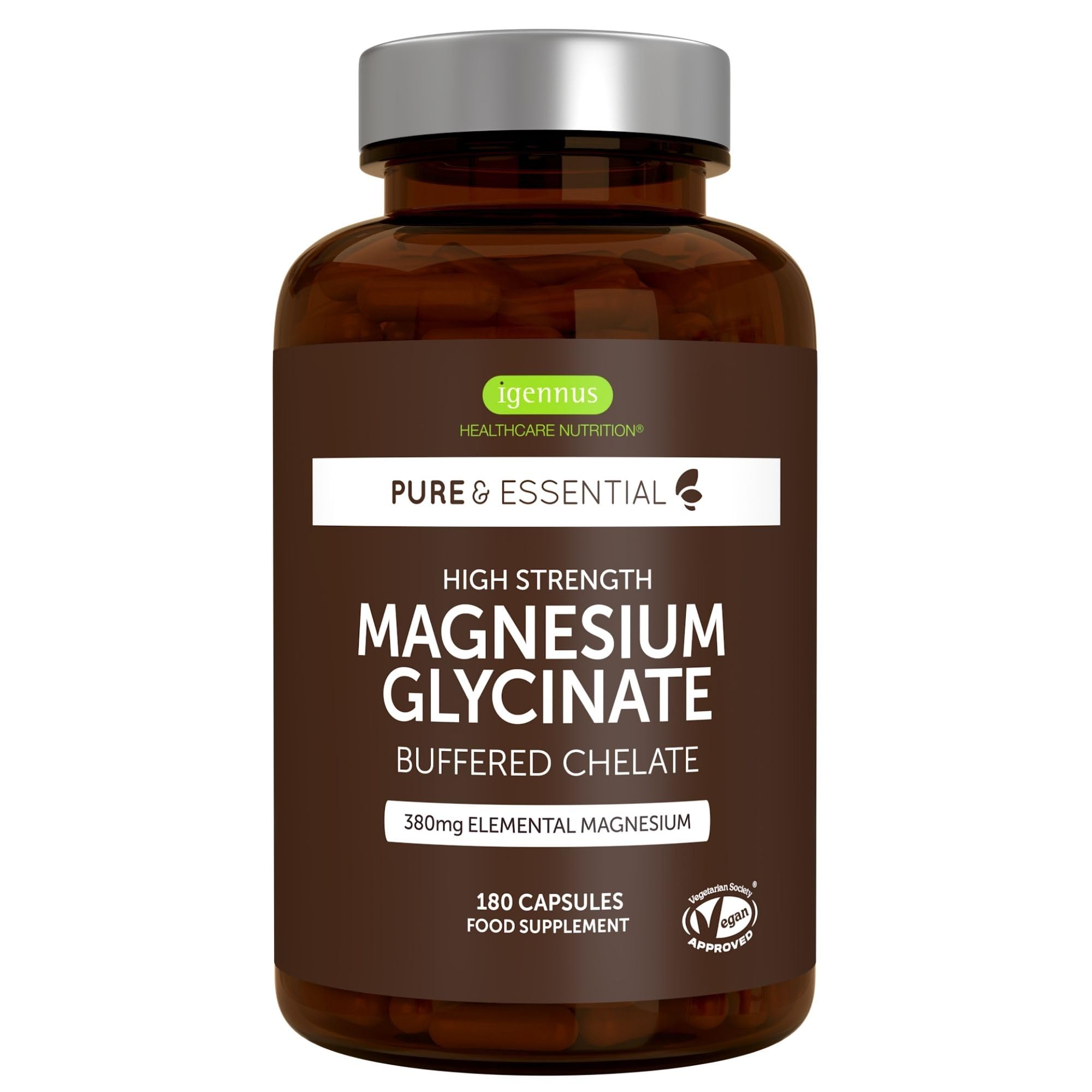 Igennus Highest Strength Chelated Magnesium Glycinate 1300mg 380mg Elemental 90 Servings Pure & Clean Buffered Magnesium Bisglycinate Vegan 180 Capsules
