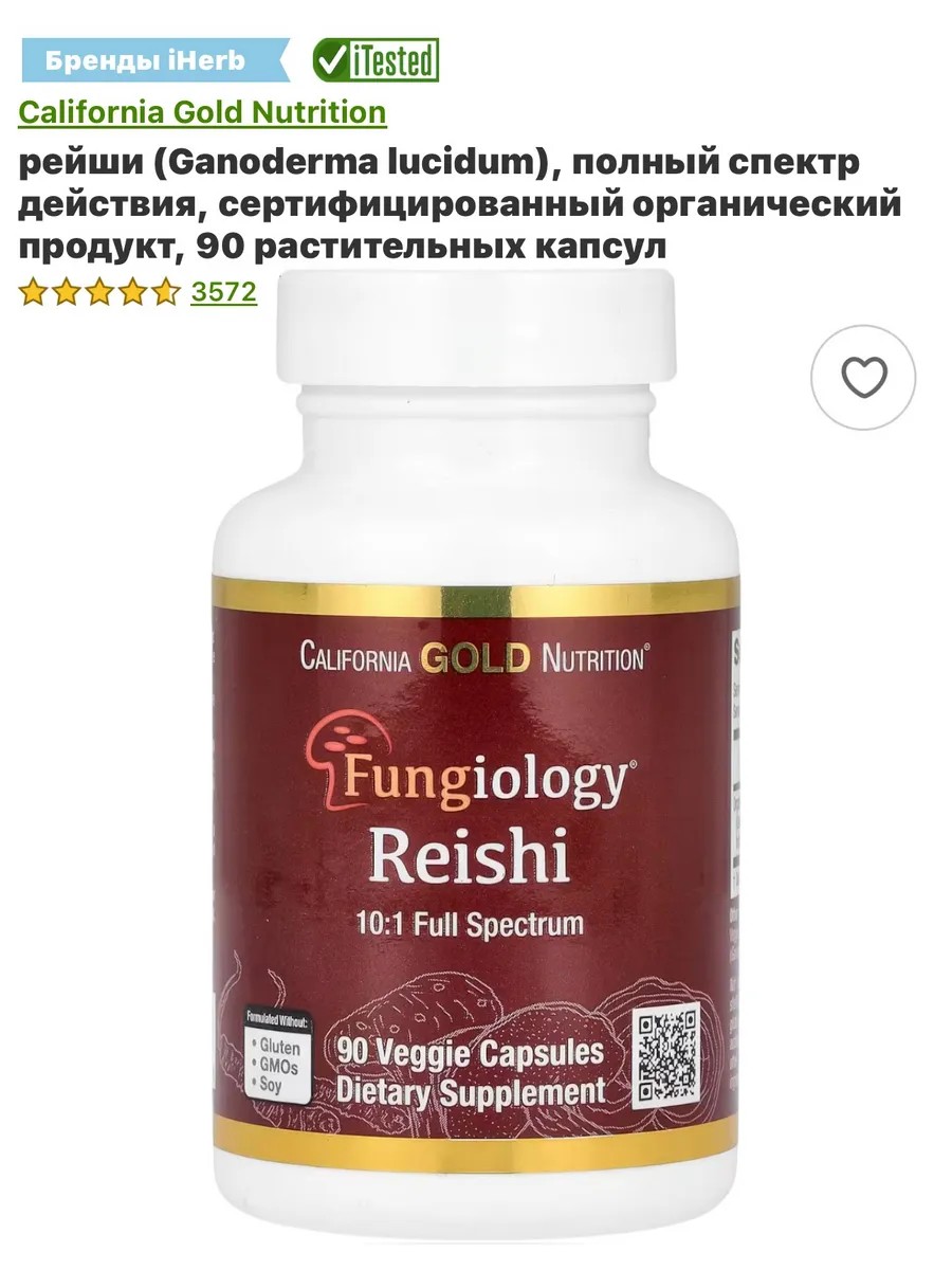 | Комплектация | California Gold Nutrition, рейши Ganoderma lucidum 90 капсул |