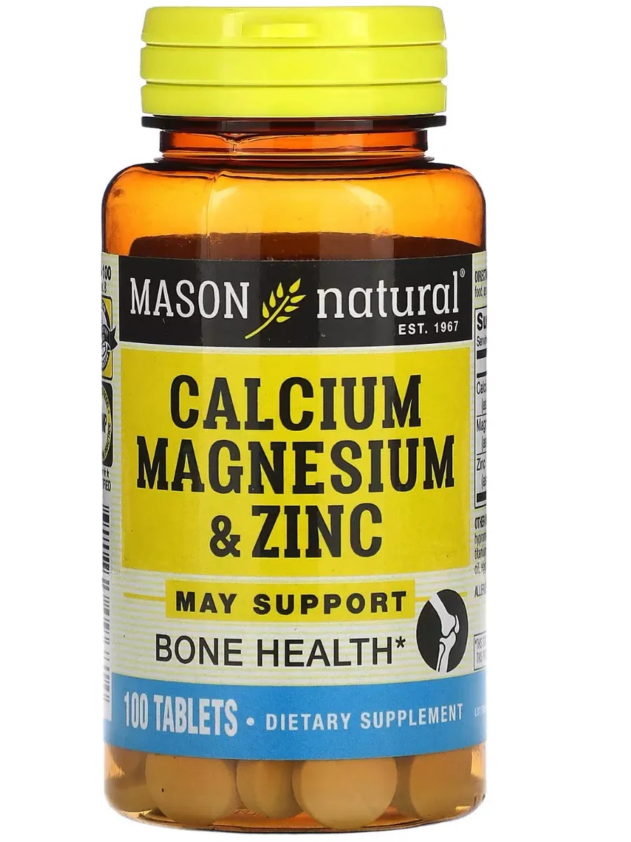 | Комплектация | Mason Natural, Кальций, магний и цинк, 100 таблеток |