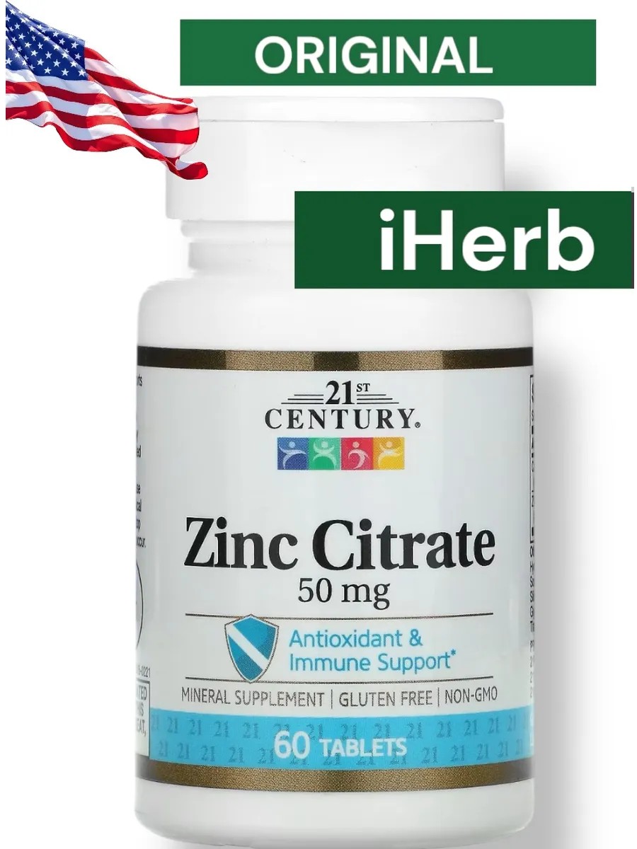 Цинк 21st Century (Zinc Citrate), 60 табл Антиоксидантная и иммунная поддержка.Цинк: является важным минералом, который необходим для поддержания здоровья иммунной системы, роста и развития, здоровья костей, зрения и здоровья кожи.Пищевая добавка с микроэлементамимогут помочь улучшить здоровье кожи, способствуя заживлению ран, прыщей и других проблем кожи. Витамин цинк для поддержания здоровья костей, особенно при заболеваниях, таких как остеопороз.