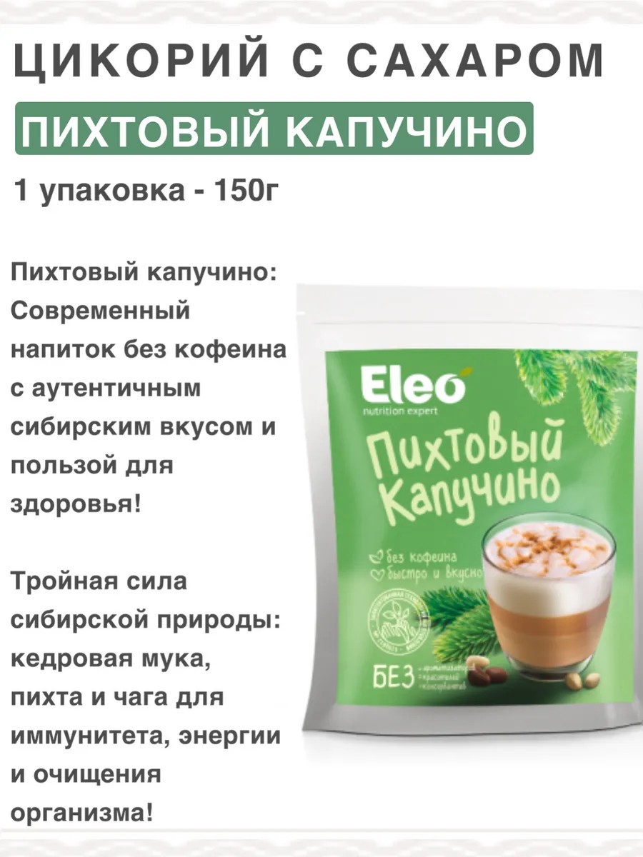 Пихтовый капучино – современный напиток с аутентичными сибирскими нотами. Знакомый кофейный вкус с ярким привкусом кедровых орешков и пихты подарит настоящее гастрономическое удовольствие. Мы искренне хотели проявить заботу о каждом неравнодушном к кофе человеку и позволить насладиться полезным напитком с натуральным, изысканным вкусом без кофеина.