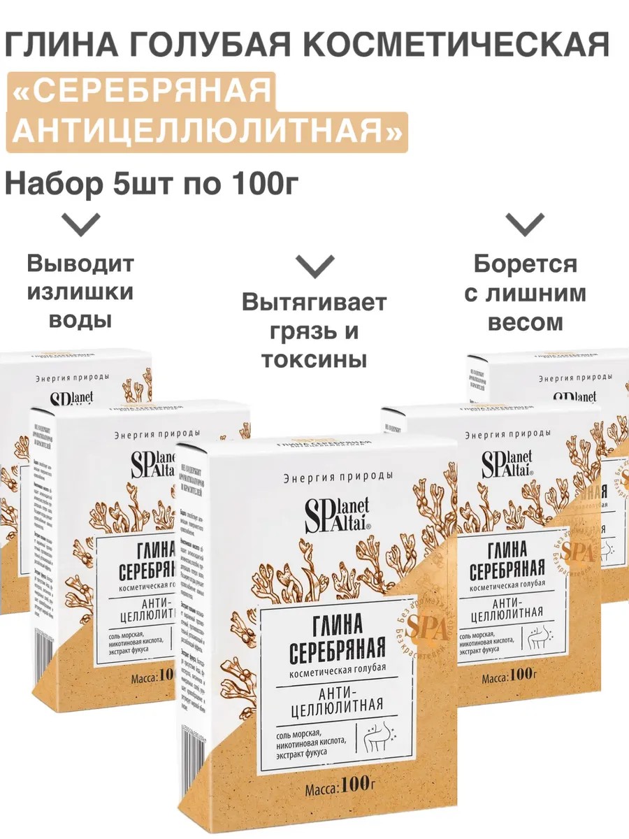 IIN Глина голубая серебряная антицеллюлитная 5шт по 100г