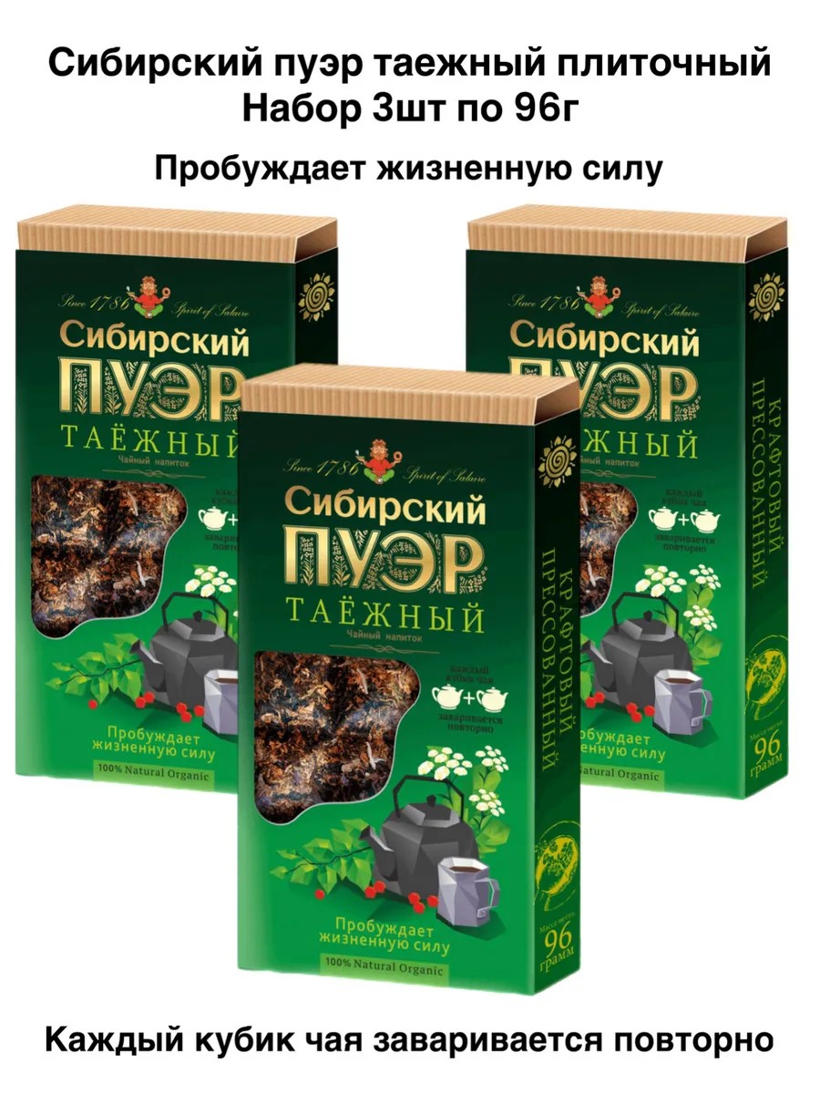 IIN Чай сибирский пуэр таежный плиточный набор 3шт по 96гр