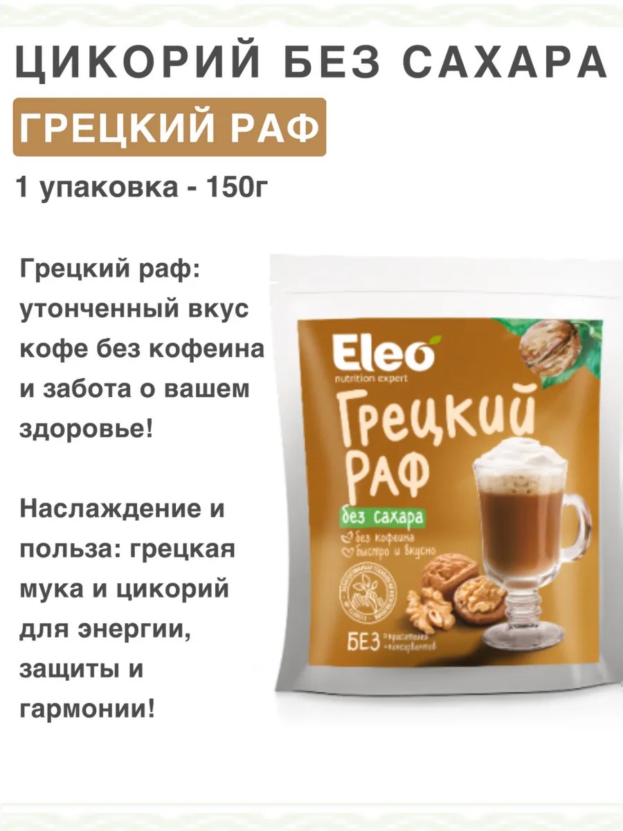 Грецкий раф – современный напиток на основе натуральных ингредиентов. Знакомый кофейный вкус с нежным привкусом грецких орехов и нотами ванили подарит настоящее гастрономическое удовольствие. Мы искренне хотели проявить заботу о каждом неравнодушном к кофе человеку и позволить насладиться полезным напитком с натуральным, изысканным вкусом без кофеина.