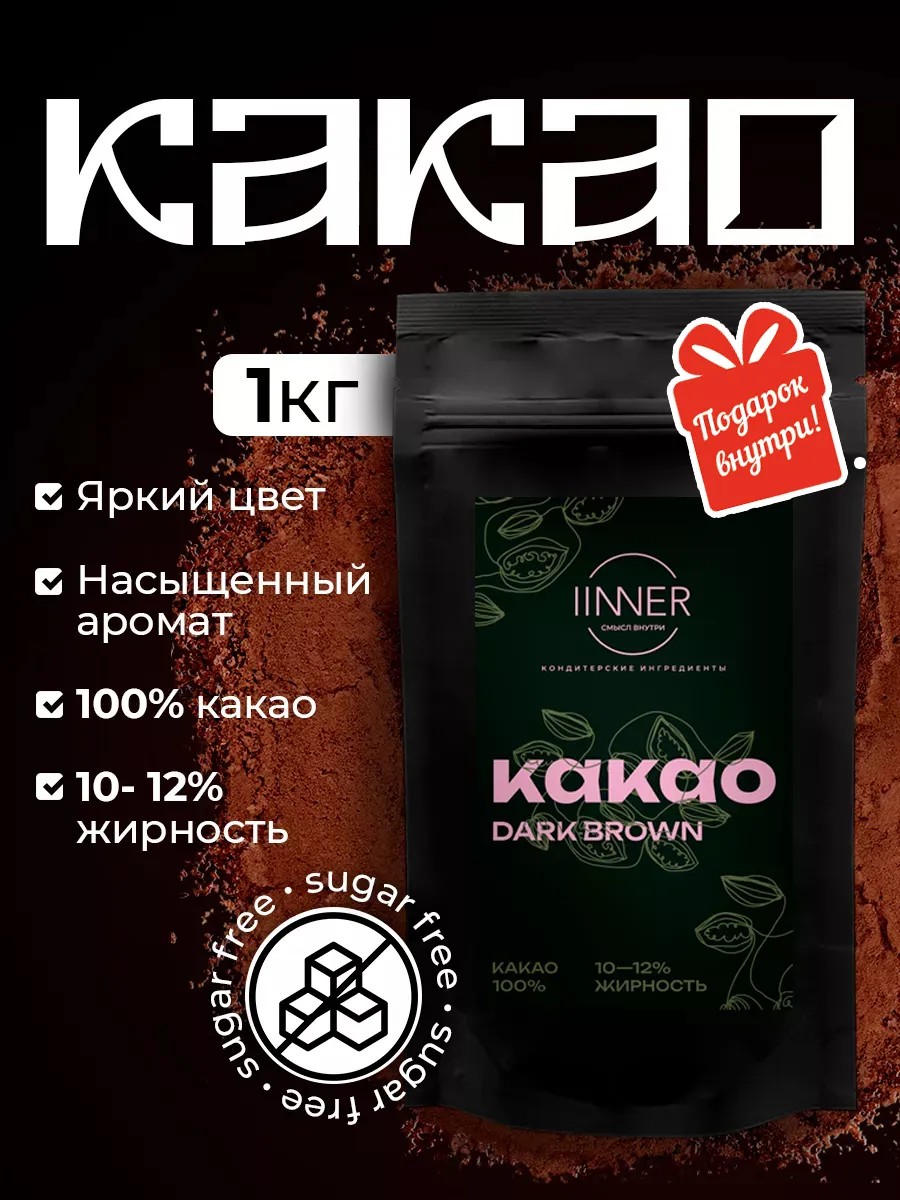 Какао-порошок IINNER Dark Brown 1 кг – это натуральный алкализованный какао с пониженным содержанием жира (10-12%), который обладает насыщенным шоколадным вкусом и ароматом.