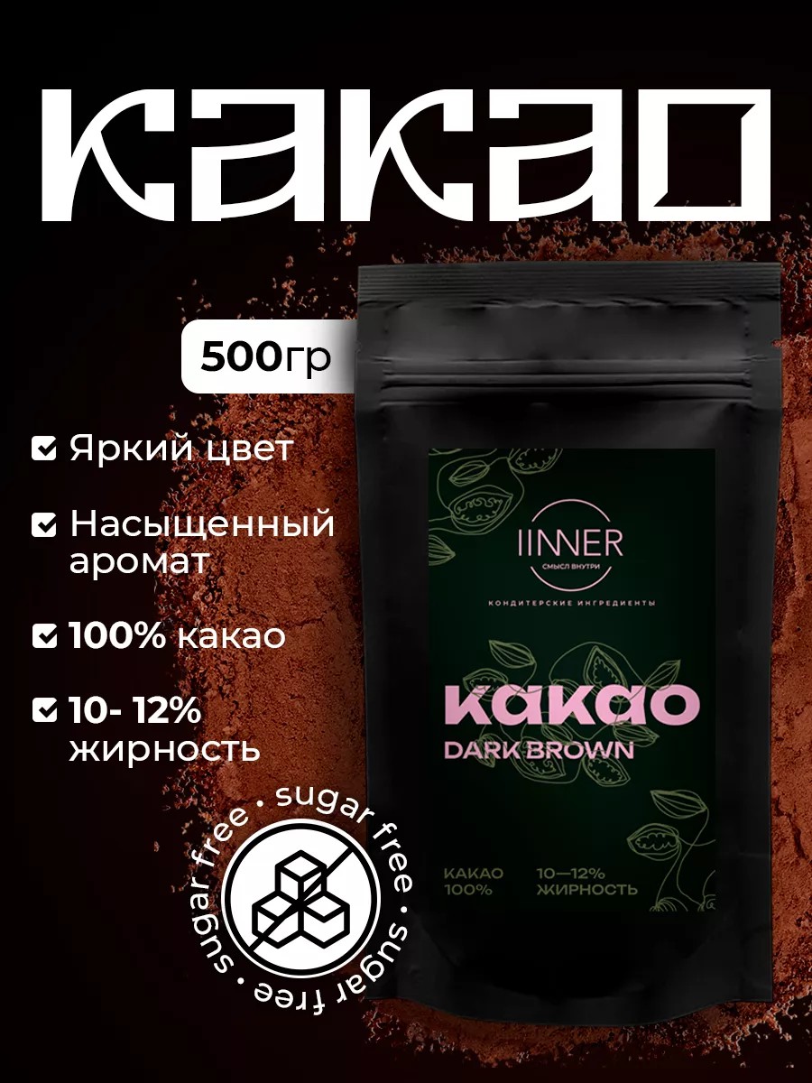 Какао-порошок IINNER Dark Brown 500 г – это натуральный алкализованный какао с пониженным содержанием жира (10-12%), который обладает насыщенным шоколадным вкусом и ароматом.