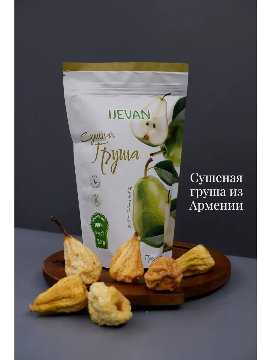 Побалуйте себя кусочком солнечной Армении с сушеной грушей IJEVAN! Эти ароматные дольки, высушенные под ласковым солнцем, сохранили в себе всю сладость и пользу спелой груши. Без добавления сахара и абсолютно вегетарианский, этот полезный перекус станет идеальным дополнением к вашему здоровому питанию. Наслаждайтесь насыщенным вкусом и хрустящей текстурой, получая заряд бодрости и энергии в любой момент дня!