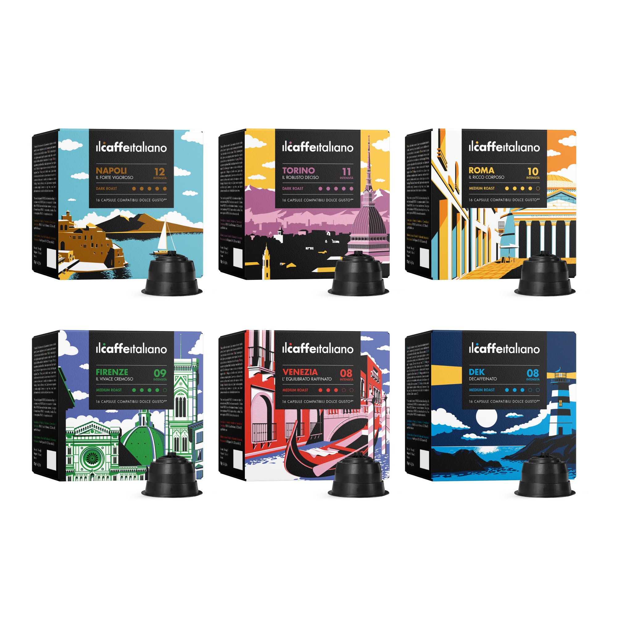 Il Caff Italiano Capsules Compatible Dolce Gusto Tasting Kit 96pcs | Compatible Dolce Gusto Capsules Tour of Italy | Nescafe Dolce Gusto Compatible Capsules Made In Italy | Frhome