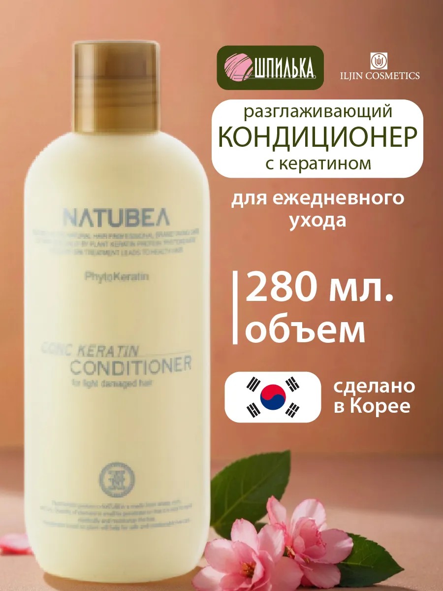 Натуби Кондиционер с кератином, разглаживающий – концентрированный уход для нормальных, поврежденных и вьющихся волос. Кератин обволакивает и разглаживает волосы, облегчая расчесывание и защищая от влажности. Богатая формула профессионального кондиционера с экстрактами кукурузы, пшеницы и сои интенсивно увлажняет, а натуральные масла придают блеск и защищают от внешних воздействий. Густая кремовая текстура с приятным хвойно-лесным ароматом легко распределяется и экономично расходуется. Результат – гладкие, эластичные волосы с естественным сиянием.
