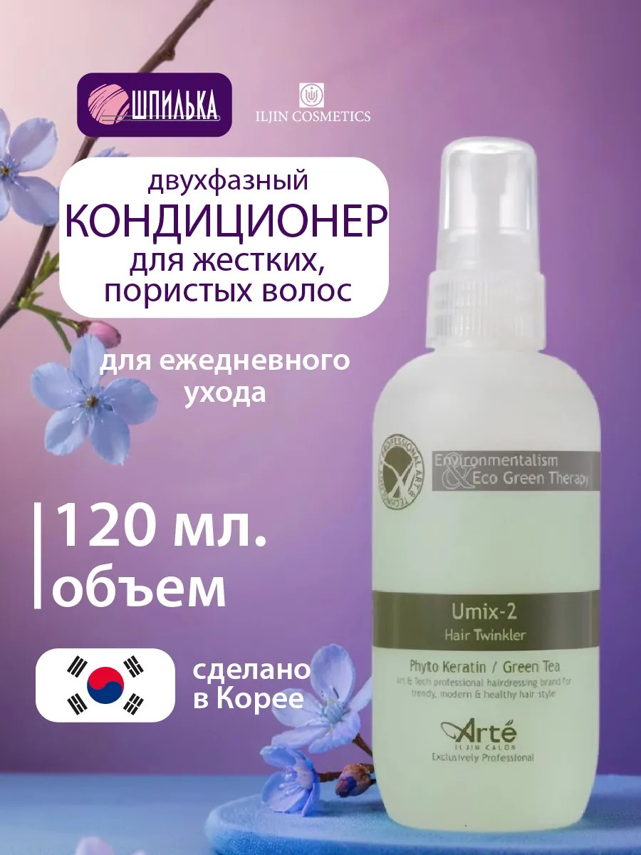 Arte Two-Phase Conditioner for Coarse, Porous Hair is a leave-in treatment ideal for daily use on coarse, unruly, and curly hair. This professional conditioner's unique formula, with olive, rosehip, and meadowsweet oils, silicones, and plant proteins, deeply nourishes hair, filling damaged cuticles and reliably locking in moisture. The conditioner creates a lightweight protective film that softens hair, makes combing easier, and prevents frizz without weighing it down. Phytokeratins strengthen the hair structure, and chamomile extract soothes the scalp. The result is manageable, smooth, and shiny hair with natural volume. This leave-in conditioner is ideal for quick and effective care of complex hair types.