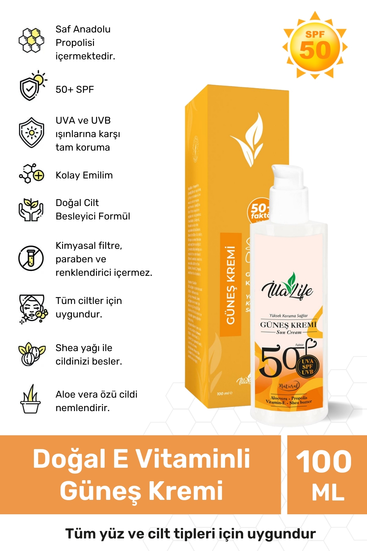 Illa Life Natural Skin Nourishing Propolis Water Resistant Sunscreen Cream with SPF 50+ Factor for All Skin Types