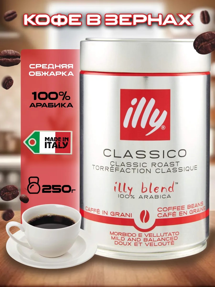 illy Кофе в зернах 100% арабика и темная обжарка, classico