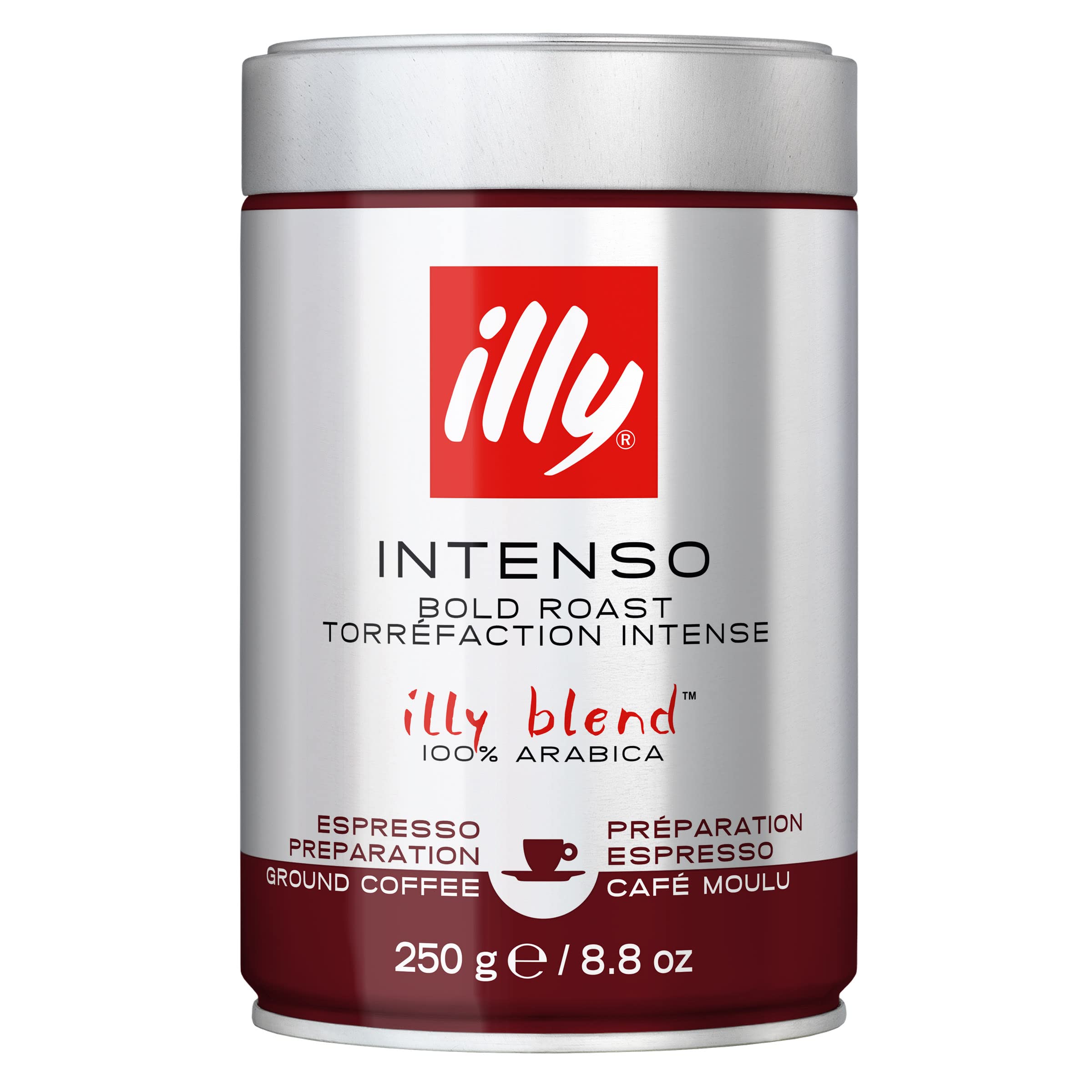 illy Ground Coffee Espresso - 100% Arabica Coffee Ground Intenso Dark Roast Warm Notes of Cocoa & Dried Fruit - Rich Aromatic Profile - Precise Roast - No Preservatives 250g Intenso Bold Roast 250 g (Pack of 1)