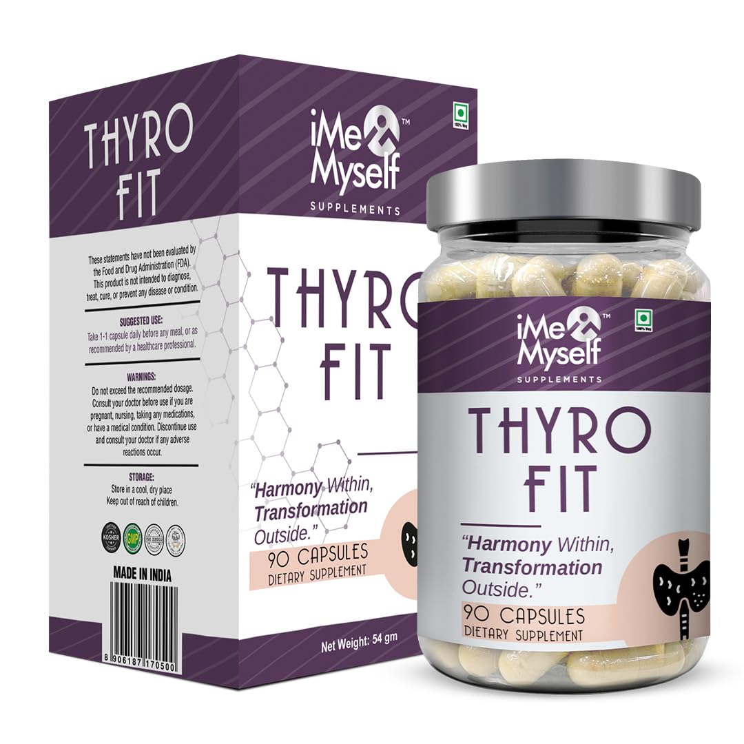 iMeMyself ThyroFit – 90 Capsules A Natural Supplement iMeMyself ThyroFit is a carefully formulated dietary supplement designed to support the body's natural balance and wellness. With a blend of essential vitamins, minerals, and herbal extracts, this product is a perfect addition to your daily health routine. Its unique combination of ingredients is intended to help maintain overall well-being. Key Features Benefits: 1. Nutrient-Rich Formula: Includes essential minerals such as Selenium, Zinc, and Magnesium to support the body's natural processes. 2. Vitamin Support: Contains B6, B12 (Methylcobalamin), and Follic Acid to contribute to energy levels and overall health. 3. Herbal and Plant Extracts: Infused with Kanchnar Guggul and Vidanga Extract, known for their traditional use in wellness practices. 4. Comprehensive Wellness: L-Tyrosine and COQ10 offer support for natural body functions, helping promote balance in the body. 5. Convenient Effective: Easy-to-consume capsules offering 90 servings per bottle, providing a consistent source of support. Conclusion: iMeMyself ThyroFit is a natural, comprehensive supplement that combines science-backed ingredients and traditional herbal wisdom to help maintain the body's natural balance. Incorporate this supplement into your wellness routine to support your body's natural rhythm and vitality.
