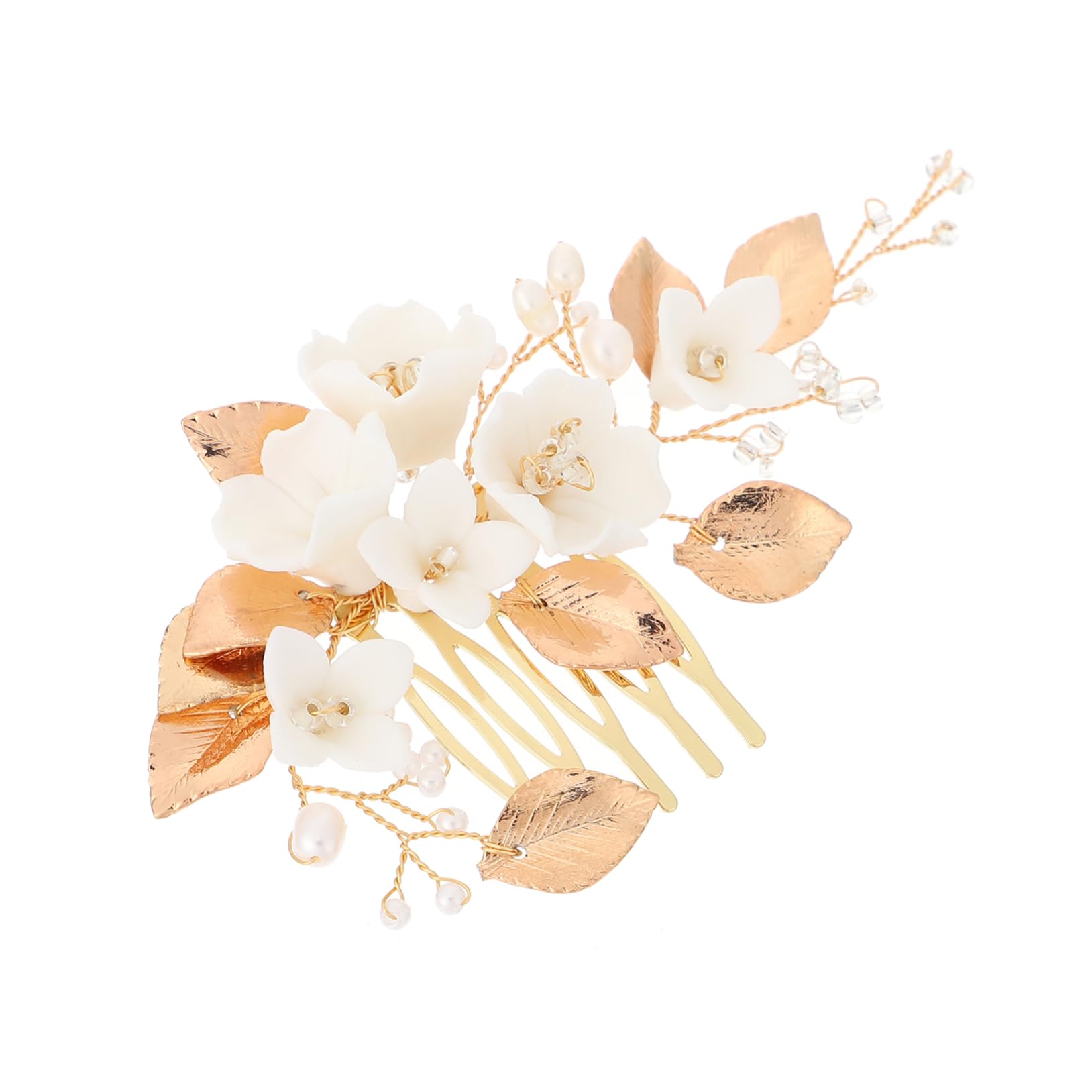 IMIKEYA 1pc White Bridal Comb Bride Hair Comb Rhinestone Headpiece Bride Headpiece Pearl Clips for Hair U- Shaped Flower Hair Clips Flower Hair Accessories Women's Wedding Alloy Ceramics