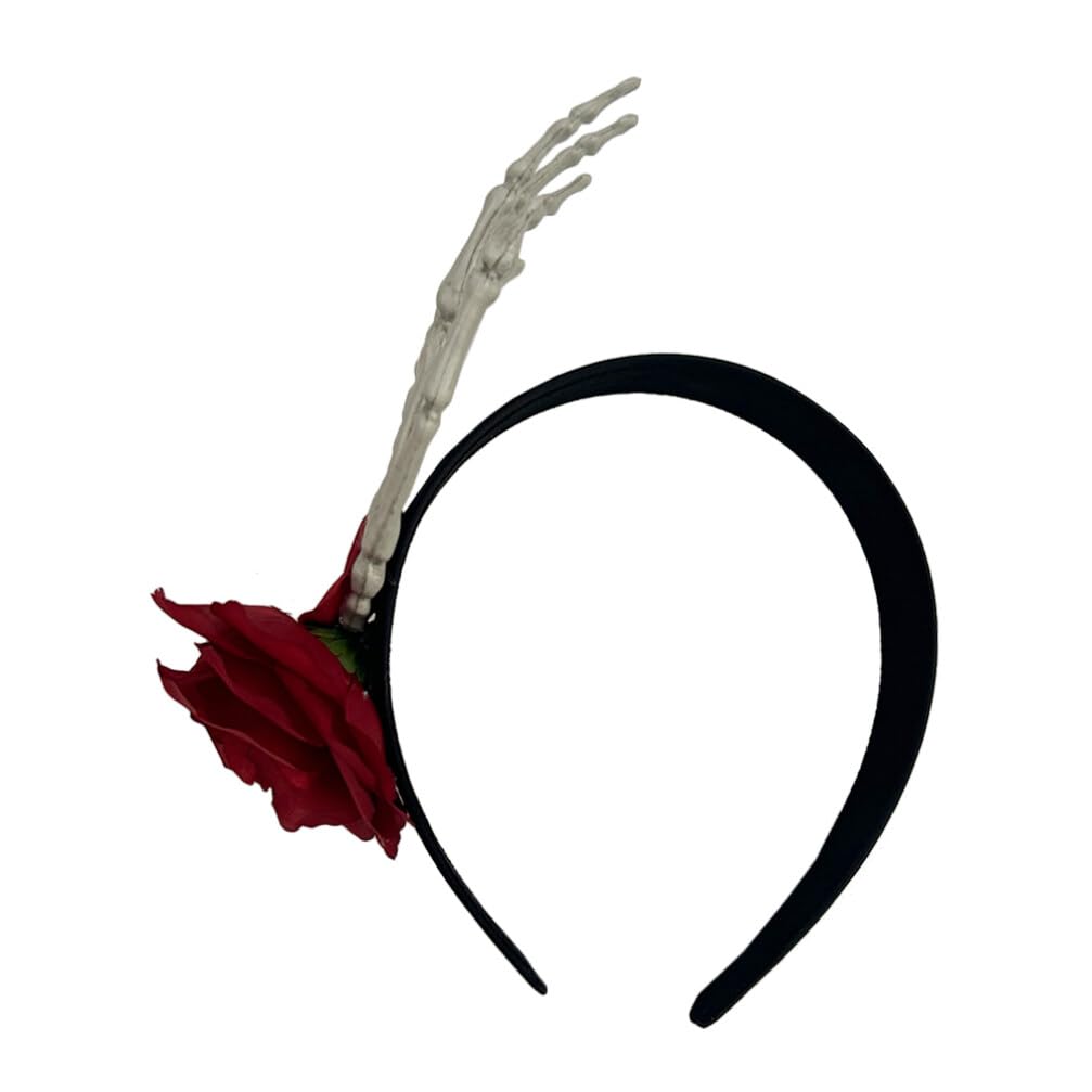 IMIKEYA Halloween Headband Red Rose Skull Headband Day Of The Dead Flowers Hairband with Skeleton Hand Zombie Bridal Cosplay Costume Hair Accessories