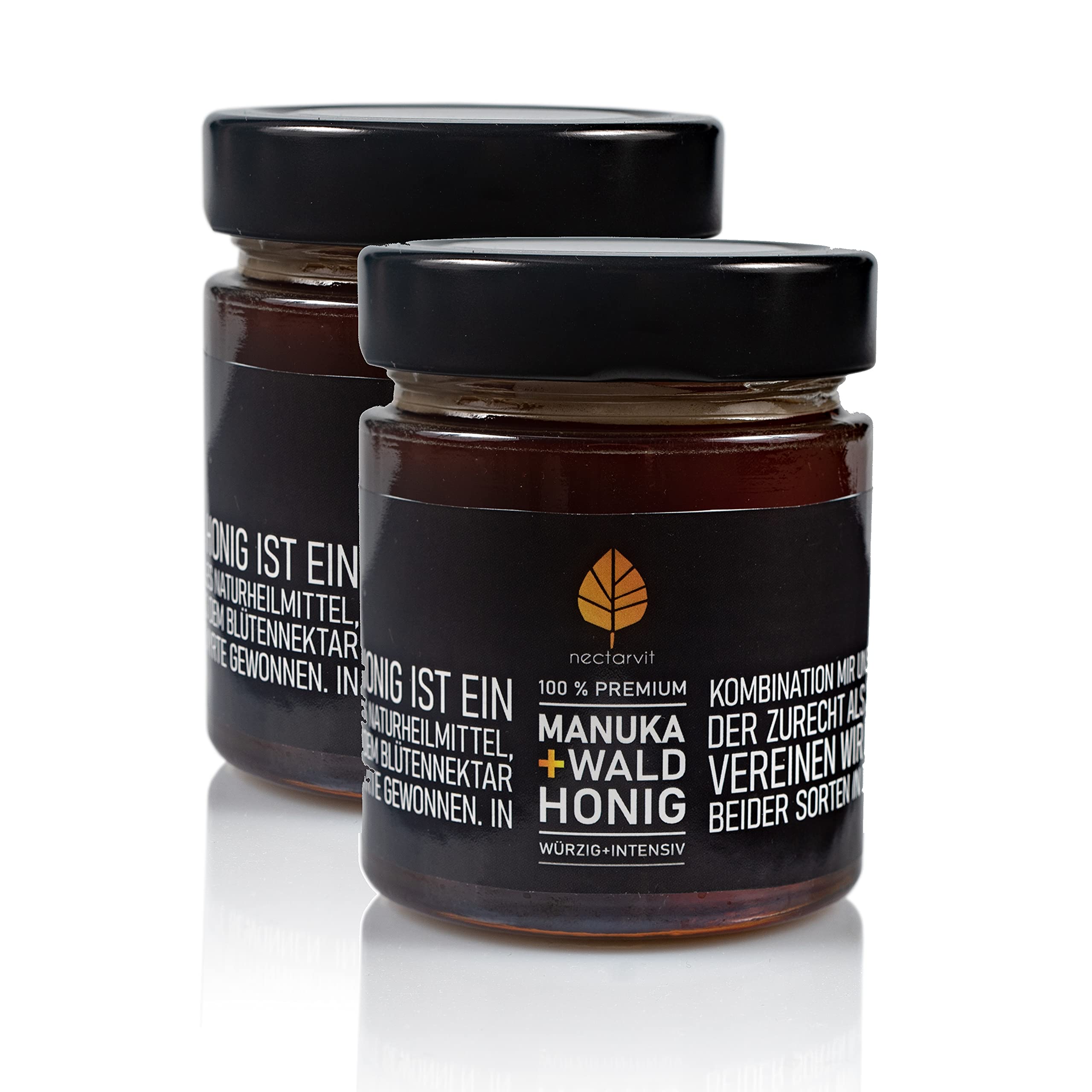 Manuka-honing is een traditioneel natuurgeneesmiddel en wordt gewonnen uit de bloemennectar van de Zuidzeemyrte. In combinatie met onze boshoning, die terecht als klassieker wordt beschouwd, combineren wij de voordelen van beide soorten in deze formule.