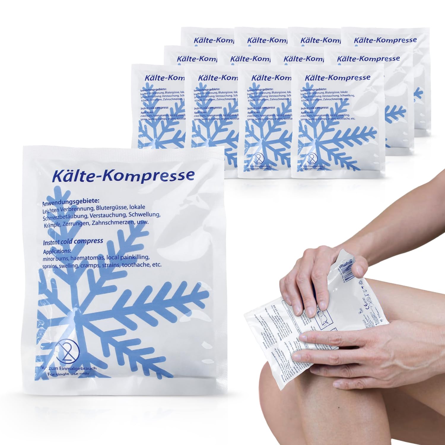 Our immediate cooling bags are innovative, versatile solutions for a quick, refreshing way to cool off in the heat.They are particularly important for outdoor enthusiasts such as hikers, campers and athletes to avoid overheating in demanding environments.The advanced cooling technology of these bags, consisting of cooling fluids and insulation, creates an effective cooling effect that uses Premium quality immediately after simple activation: Our cooling batteries are one-way cooling batteries for easy use as an immediate cold compress;The tear-resistant outside does not run out or does not tear and can be transported safely in your hiking equipment, sports bag, luggage, car, first aid set or in your medicine cabinet at home.First aid preparation: With our cooling pack for injuries, you have comfortable access to the cold therapy for emergency situations;You need you for your first aid box accessories or emergency medical care.Immediate reliability: Our disposable cooling batteries are designed in such a way that they offer a comfortable relief in the event of injuries to joints, muscles and bruises.Apply immediate cold packs in injured areas to reduce swelling, inflammation and pain.Note: Do not put the activated cooling pillow on the skin to wrap a better result before use in a cloth.Practical and portable: it is very easy to take our cooling packs with you anywhere.Perfect for use at home, in the gym or outdoors.Treat strain, sprain, bruises and bumps quickly and effectively with our immediate cooling batteries for injuries.Fast and easy to use: no freezer required.Simply burst the internal bag of the cooling compress by pressing them, shake the disposable cold pack, mix the content and activate our cold compress instant ice bag, offers immediate relief.Package of advantage: Our pack contains 12 cooling pads that are inexpensive;Every immediate cooling pack measures 15.2 and 12.7 cm in size to offer plenty of cover;First aid cooling batteries can be applied quickly and without problems to affected areas. Unsere Sofort-Kühltaschen sind innovative, vielseitige Lösungen für eine schnelle, erfrischende Art, sich in der Hitze abzukühlen. Sie sind besonders wichtig für Outdoor-Enthusiasten wie Wanderer, Camper und Sportler, um Überhitzung in anspruchsvollen Umgebungen zu vermeiden. Die fortschrittliche Kühltechnologie dieser Taschen, bestehend aus Kühlflüssigkeiten und Isolierung, erzeugt einen effektiven Kühleffekt, der sofort nach einfacher Aktivierung einsetztPremium-Qualität: Unsere Kühlakkus sind Einweg-Kühlakkus für eine einfache Verwendung als sofortige Kältekompresse; die reißfeste Außenseite läuft nicht aus oder reißt nicht und kann sicher in Ihrer Wanderausrüstung, Sporttasche, Reisegepäck, Auto, Erste-Hilfe-Set oder in Ihrem Medizinschrank zu Hause transportiert werden. Erste-Hilfe-Vorbereitung: Mit unserem Kühlakku für Verletzungen haben Sie bequemen Zugang zur Kältetherapie für Notsituationen; Sie benötigen sie für Ihr Erste-Hilfe-Kasten-Zubehör oder Notfall-medizinische Versorgung. Sofortige Zuverlässigkeit: Unsere Einweg-Kühlakkus sind so konzipiert, dass sie eine bequeme Linderung bei Verletzungen an Gelenken, Muskeln und Prellungen bieten. Tragen Sie sofortige Kältepackungen an verletzten Stellen auf, um Schwellungen, Entzündungen und Schmerzen zu reduzieren. Hinweis: Legen Sie das aktivierte Kühlkissen nicht auf die Haut, um ein besseres Ergebnis vor Gebrauch in ein Tuch zu wickeln. Praktisch und tragbar: Es ist sehr einfach, unsere Kühlakkus überall hin mitzunehmen. Perfekt für den Einsatz unterwegs zu Hause, im Fitnessstudio oder im Freien. Behandeln Sie Zerrungen, Verstauchungen, Prellungen und Beulen schnell und effektiv mit unseren Sofort-Kühlakkus für Verletzungen. Schnell und einfach zu bedienen: Kein Gefrierschrank erforderlich. Einfach den internen Beutel der Kühlkompresse platzen, indem Sie sie drücken, schütteln Sie die Einweg-Kältepackung stark, mischen Sie den Inhalt und aktivieren Sie unseren Kaltkompresse-Instant-Eisbeutel, bietet sofortige Linderung. Vorteilspackung: Unsere Packung enthält 12 Kühlpads, die Ihr Geld preiswert sind; jede sofortige Kühlpackung misst 15,2 und 12,7 cm in der Größe, um reichlich Abdeckung zu bieten; Erste-Hilfe-Kühlakkus können schnell und ohne Probleme auf betroffene Stellen aufgetragen werden.Sofortige Kältekompresse (15,3 x 12,7 cm) 12 Stück | Einweg-Kühlpads zur Linderung von Schmerzen, Schwellungen und leichten Verletzungen | Effektive Erste-Hilfe-Behandlung 15,2 x 12,7 cm 12.0