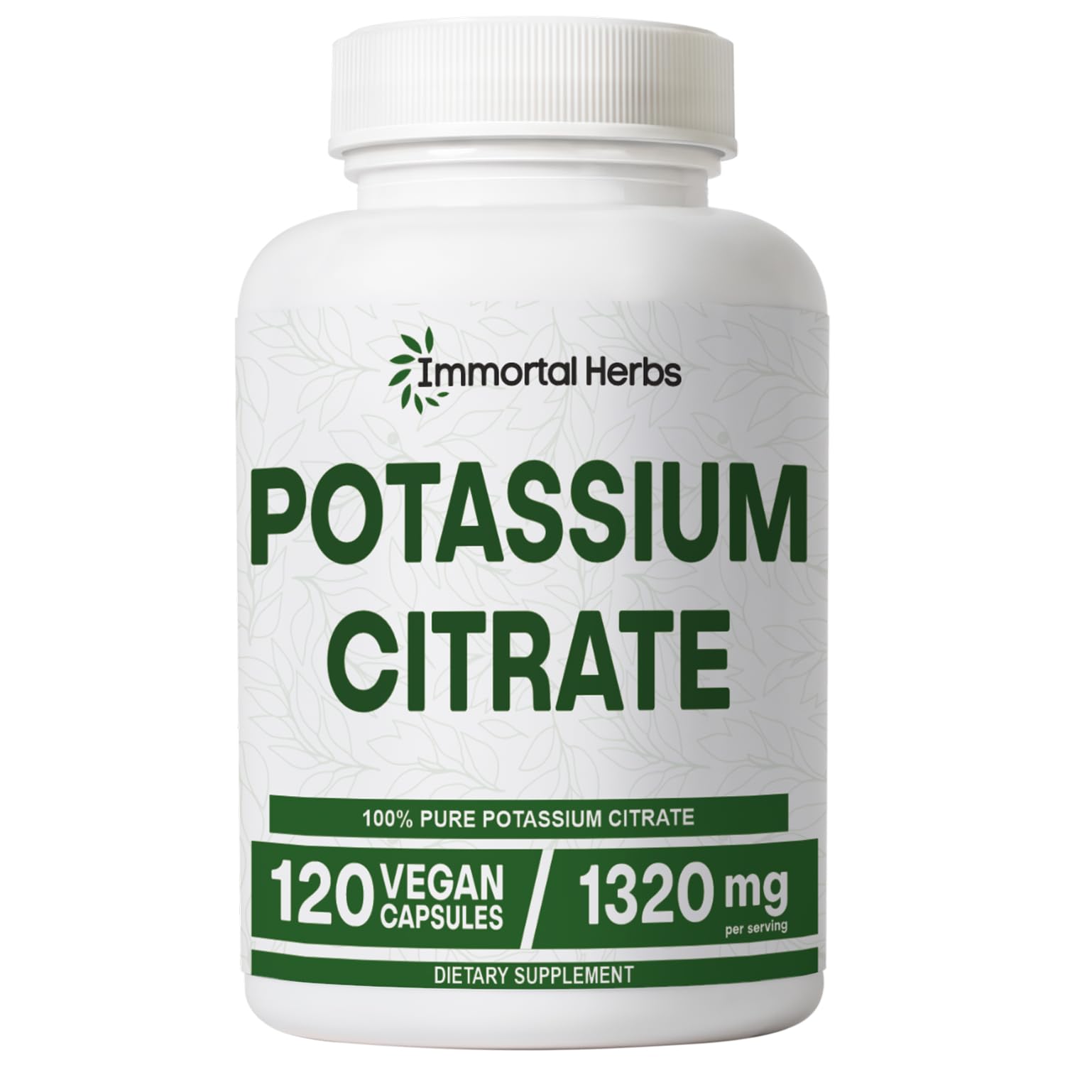 Immortal Herbs Potassium Citrate Supplement 1320mg High Absorption Powder 120 Vegan Capsules Non-GMO & Gluten-Free Potassium Supplements for Women and Men