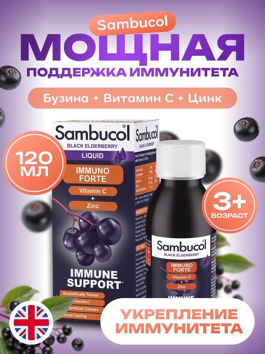 Sambucol Immuno Forte Liquid – Комплекс для укрепления иммунитета на основе чёрной бузины, витамина C и цинка