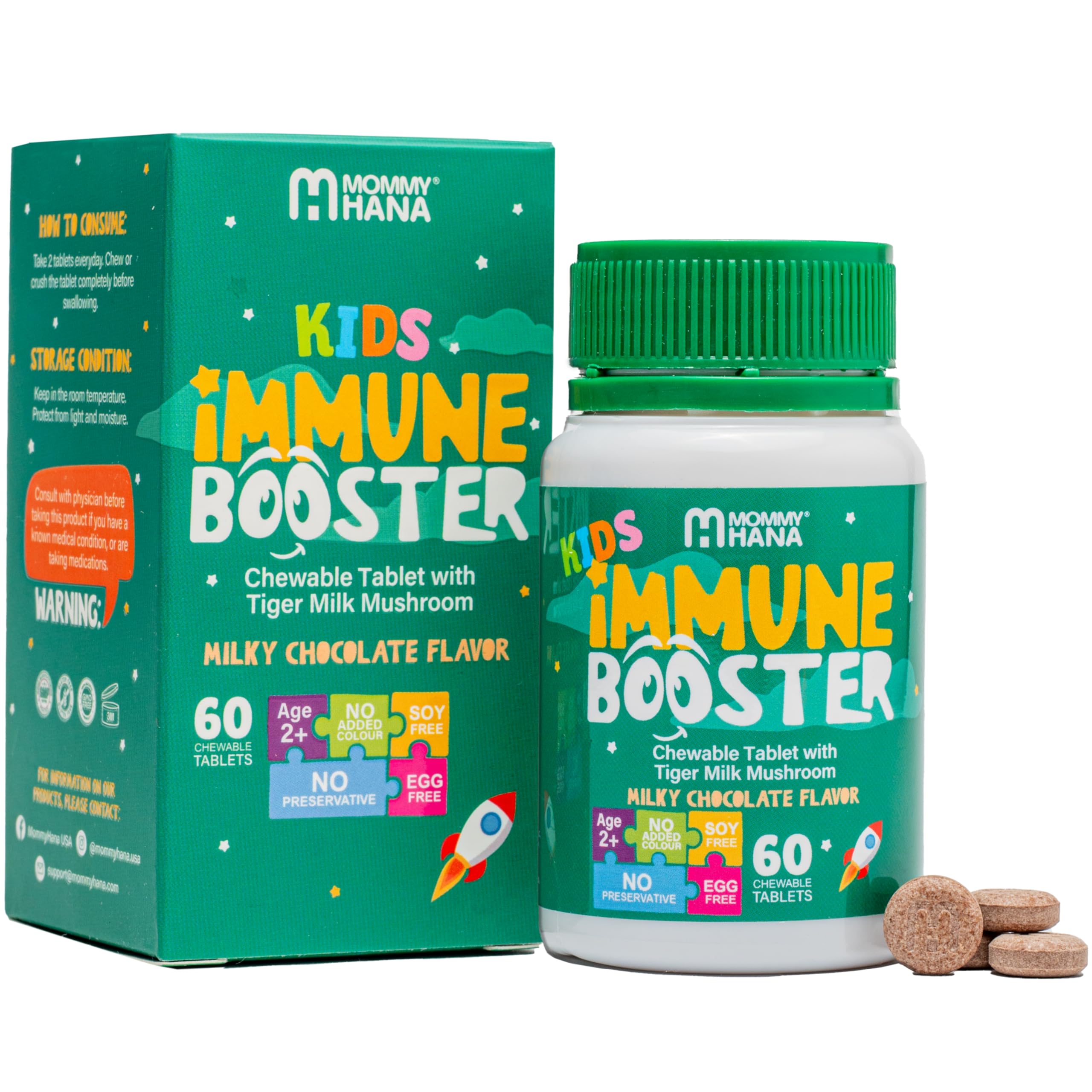 A Taste They Love, Results You'll Trust. These delicious cocoa-flavored chewables make supporting your child's immunity as easy as a daily treat – no fuss, no battles, just health in every bite. Fuel Their Growth with Every Tablet. Enriched with Cow's Milk and Colostrum, this formula supports your child's development, ensuring they grow strong, healthy, and resilient. Protect Your Child from the Inside Out. Packed with Ginkgo Biloba and Lutein, this Kids Immune Support Supplement defends their body against oxidative stress, keeping them energetic, focused, and ready for every adventure. A Healthy Gut for a Stronger Defense! This Immune Support for Kids includes Inulin, a natural prebiotic that feeds good gut bacteria, helping your child's digestive system thrive and their immunity soar. Is Your Child Falling Behind Due to Sickness? With our Kids Immune Support Supplement, a powerful blend of Vitamin D, Tiger Milk Mushroom, and Colostrum, you can give them the immune boost they need to stay strong and active every day.