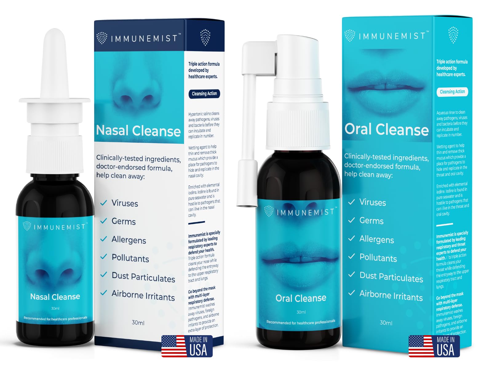 ImmuneMist Nasal and Oral Cleanse Bundle - Iodine Throat Spray and Nasal Iodine Spray - Up to 500 Doses - Made in The USA