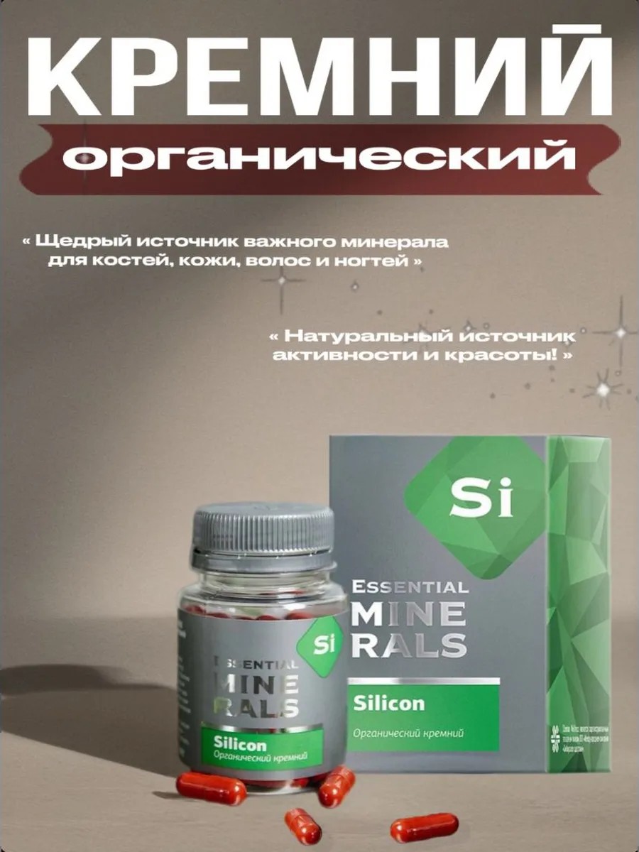 Кремний - ключевой элемент для укрепления костей и суставов, сокращения риска переломов и активации роста новых костных клеток. Он помогает уменьшить вред от свободных радикалов и обладает сильными иммуномодулирующими свойствами.
