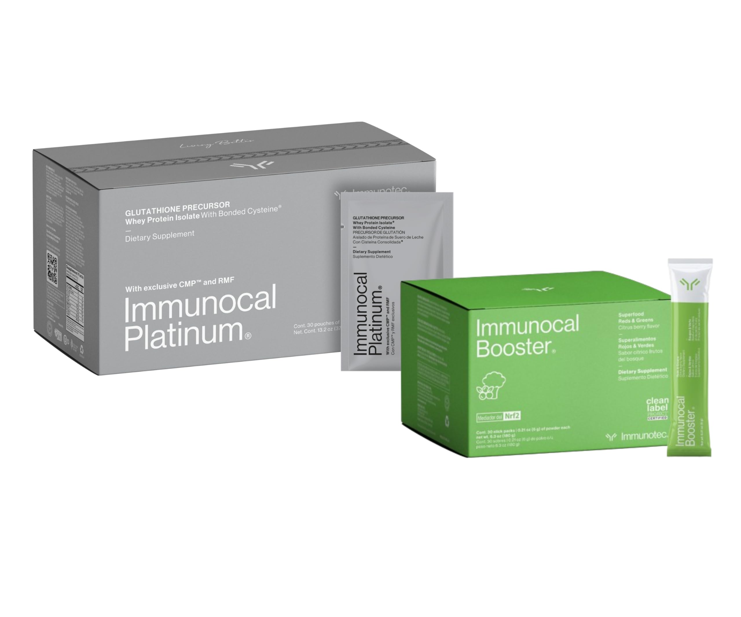 Discover this new bundle containing 30 servings of Immunocal Platinum and 30 servings of our Booster, filled with minerals and vitamins from 50 fruits and veggies.