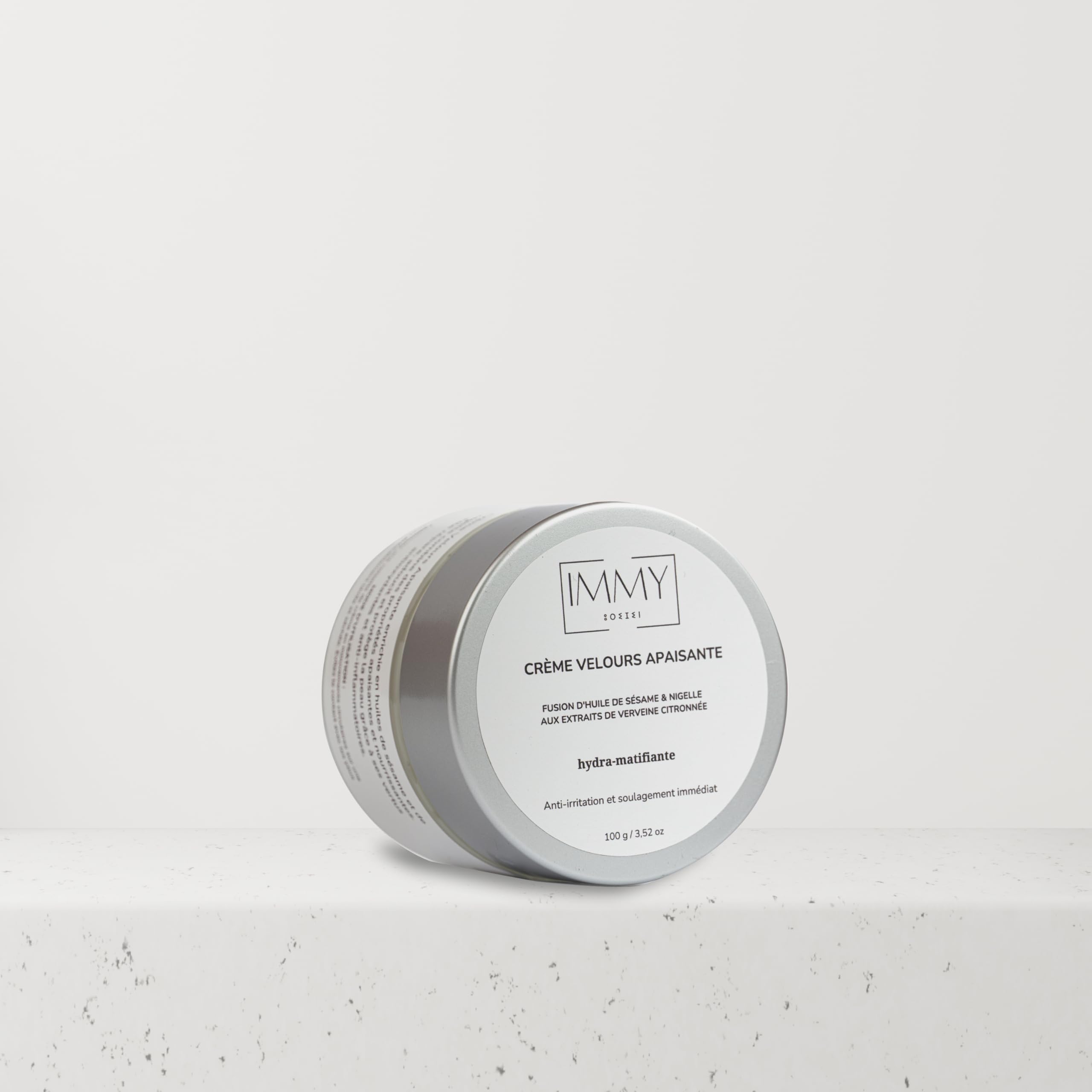Large format: discover the soothing velvet cream, a delicate care that combines the benefits of sesame and nigella oils to provide your skin with unparalleled softness. Formulated to soothe sensitive and reactive skin, this rich and creamy cream absorbs quickly to deeply nourish while repairing and protecting the skin barrier. Thanks to its powerful antioxidant and anti-inflammatory properties, the soothing velvet cream helps reduce redness and irritation, leaving your skin soothed, soft and healthy. Key features: Enriched with sesame oil, rich in essential fatty acids and vitamin E, and nigella oil, known for its soothing and restorative properties. Texture and application: The velvety texture glides over the skin and absorbs quickly. Apply morning and evening to clean skin and massage gently until completely absorbed. Skin types: especially suitable for sensitive, dry or irritated skin. Benefits: Repairs and softens the skin, helps reduce redness and discomfort and provides long-lasting hydration. Feeling: Leaves the skin soft and supple, with a cool and pleasant feeling. Daily Use: Ideal for daily use to keep skin soothed and well nourished. Instructions for use: For best results, apply the cream to face and neck after cleansing and massage gently until completely absorbed. Bottom Line: Transform your skincare routine with the Velvet Soothing Cream. Give your skin the comfort and protection it deserves with a formula rich in natural ingredients. Enjoy calming, nourished and radiant skin every day SAFETY WARNING Avoid contact with the eyes.Glass jar 100 ml.Kalmerende fluwelen gezichtscrème Groot formaat: ontdek de rustgevende fluwelen crème, een delicate verzorging die de voordelen van sesam- en nigella-oliën combineert om je huid een ongeëvenaarde zachtheid te bieden. Geformuleerd om de gevoelige en reactieve huid te kalmeren, trekt deze rijke en romige crème snel in om diep te voeden en tegelijkertijd de huidbarrière te herstellen en te beschermen. Dankzij zijn krachtige antioxiderende en ontstekingsremmende eigenschappen helpt de kalmerende fluwelen crème roodheid en irritatie te verminderen, waardoor je huid gekalmeerd, zacht en gezond blijft. Belangrijkste kenmerken: Verrijkt met sesamolie, rijk aan essentiële vetzuren en vitamine E, en nigella-olie, bekend om zijn rustgevende en herstellende eigenschappen. Textuur en toepassing: De fluweelachtige textuur glijdt over de huid en absorbeert snel. Breng 's ochtends en' s avonds aan op een schone huid en masseer zachtjes tot het volledig is opgenomen. Huidtypes: vooral geschikt voor de gevoelige, droge of irriterende huid. Voordelen: herstelt en verzacht de huid, helpt roodheid en ongemak te verminderen en zorgt voor langdurige hydratatie. Gevoel: Maakt de huid zacht en soepel, met een koel en aangenaam gevoel. Dagelijks gebruik: ideaal voor dagelijks gebruik om de huid gekalmeerd en goed gevoed te houden. Gebruiksaanwijzing: Voor het beste resultaat breng je de crème na het reinigen aan op gezicht en hals en masseer zachtjes tot het volledig is opgenomen. Kortom: Transformeer uw huidverzorgingsroutine met de Velvet verzachtende crème. Geef je huid het comfort en de bescherming die het verdient met een formule die rijk is aan natuurlijke ingrediënten. Geniet elke dag van een kalmerende, gevoede en stralende huid VEILIGHEIDSWAARSCHUWING Vermijd contact met de ogen.Glazen pot 100 ml.