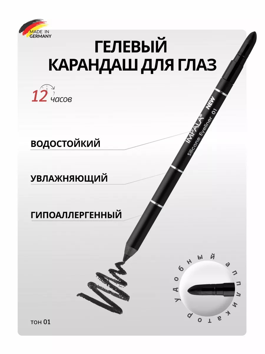 Карандаш для глаз с суперустойчивой формулой, с силиконовым аппликатором для растушевки.