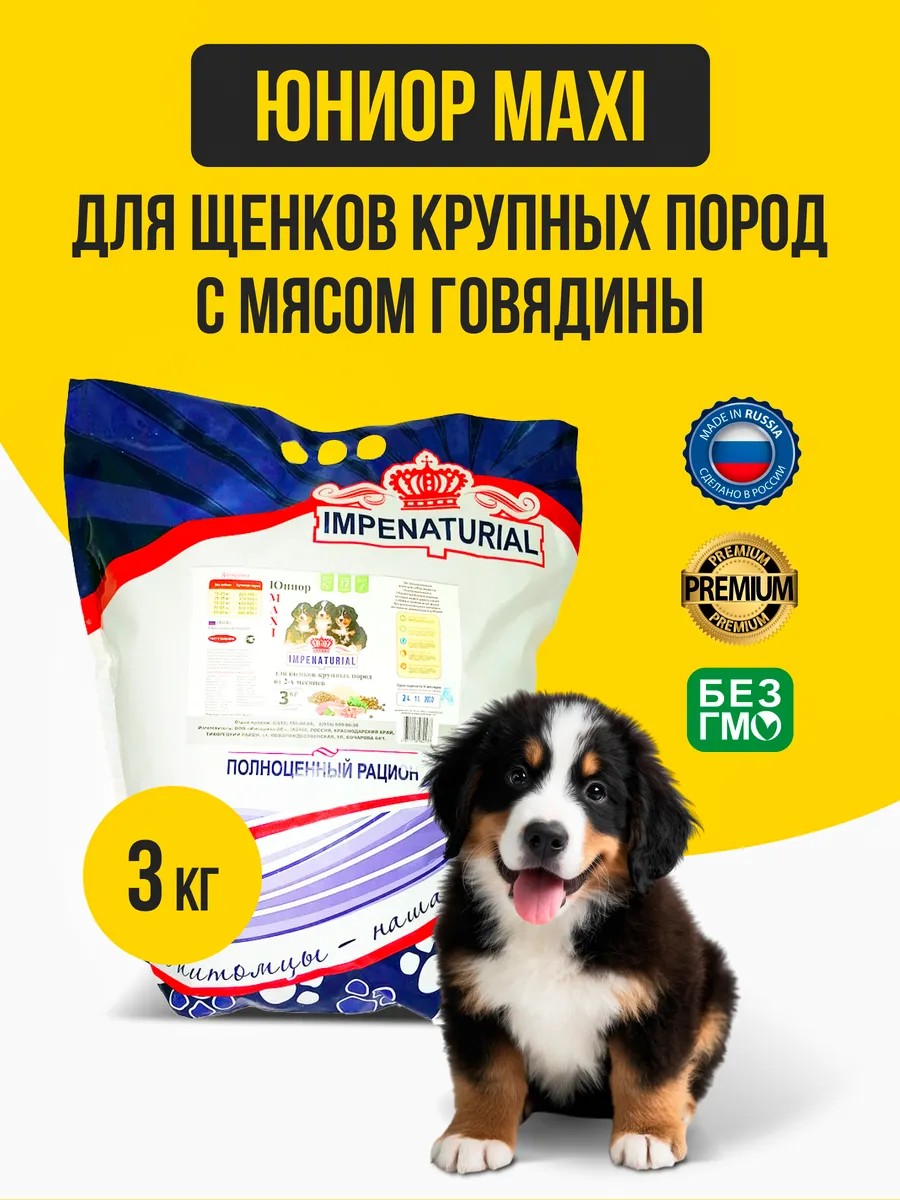 Корм сухой Премиум класса Юниор Maxi - для щенков крупных пород с говядиной от двух месяцев.Корм сухой премиум класса для щенков крупных пород.Полнорационный корм поддерживает естественный устойчивый иммунитет. Благодаря правильным технологиям приготовления в рационе сохранилось максимальное количество питательных веществ, витаминов и минералов, необходимых животному для нормальной жизнедеятельности.Жизненная сила и энергия. Корм помогает сохранить и укрепить здоровье питомца благодаря высокому содержанию говядины и полезных нутриентов.Важнейшую роль играет витамин D3 в регуляции обмена кальция и фосфора у собак. В частности, он улучшает всасывание обоих веществ через кишечник, снижает их потерю с мочой и оптимизирует встраивание кальция в костную ткань. Поддерживая достаточный уровень кальция в крови, витамин D3 бережёт также здоровье нервной системы.