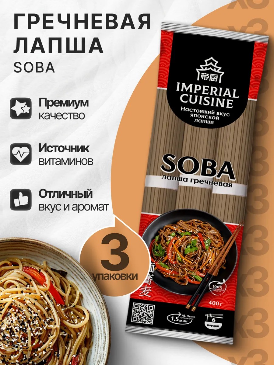 лапша гречневая Соба быстрого приготовления 3шт*400г