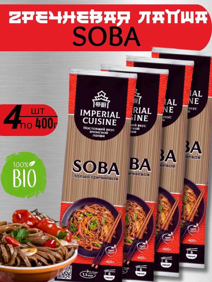 Длинная, плоская лапша соба из смеси пшеничной и гречневой муки от Империал Кузин.