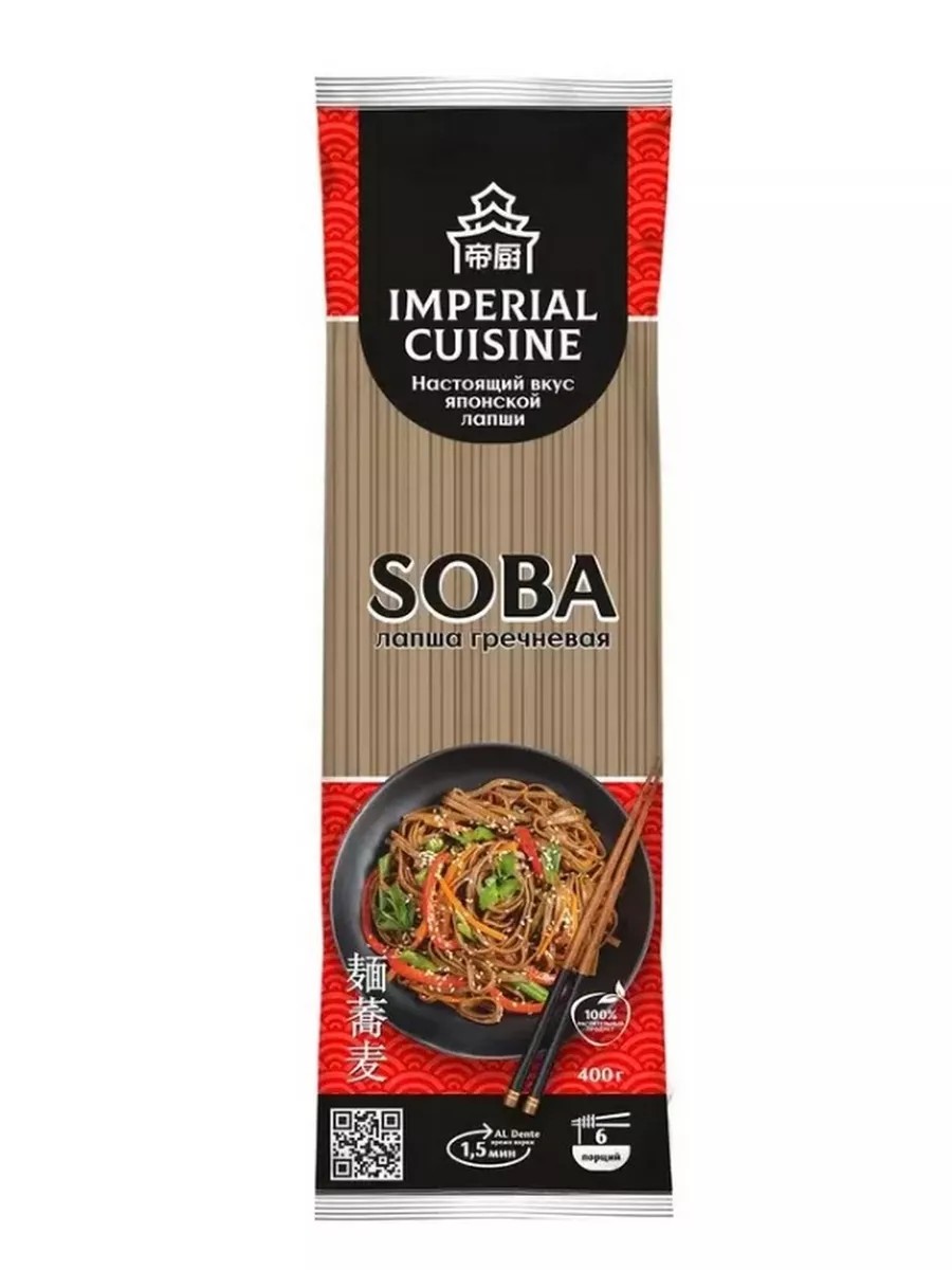 Лапша Соба Imperial Cuisine изготовлена по традиционному азиатскому рецепту, быстро варится и хорошо пропитывается вкусом бульона или соуса. Соба считается самой полезной среди всех макаронных изделий. Гречневая крупа специальной обжарки придает лапше особый пикантный вкус. Приготовить любимые блюда японской и китайской кухни станет проще.