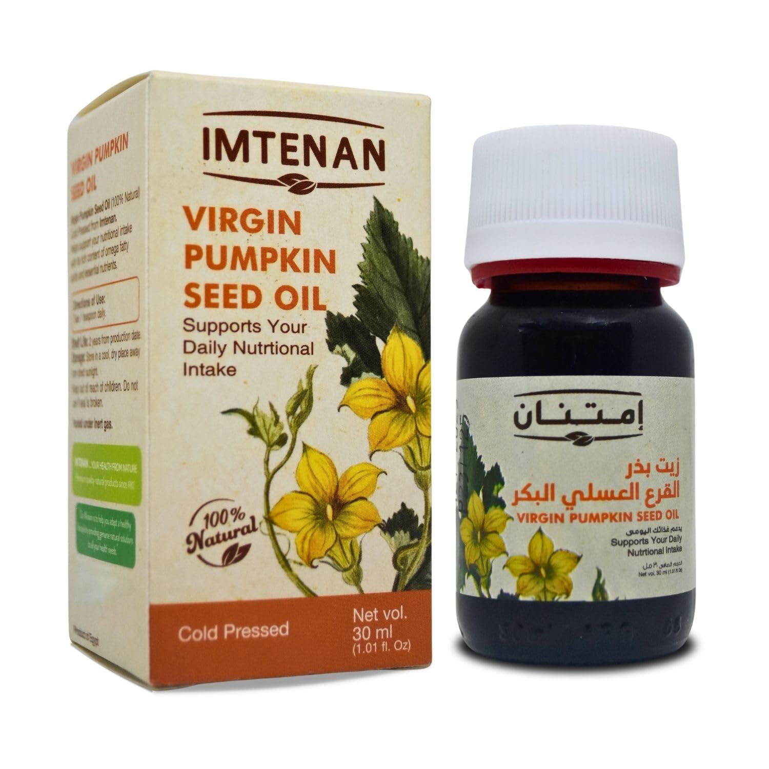 - Item Description : ✓ - Imtenan Virgin Pumpkin Seed Oil Natural Pure Oils Cold Pressed Premium Undiluted Egypt Herbal Fresh Herb Egyptian Original Cooking Hair Skin No Additives No Gmo Kosher Halal ( 1 Pack 1.01 oz 30 ml ) ? ? ? ? - Pumpkin Oil Cold Pressed : An Excellent Choice For Creating Most Any Dish , Whether You Are Cooking For Your Family Or Restaurant And Oil Versatile . Add Versatility In Your Kitchen With This Light Tasting Oil , Great For Cooking . ✓ - 100 Pure Pumpkin Oil Provides You With The Best Of Natural Great Ingredients And Pumpkin Oil Is Naturally Extracted From The Finest Pumpkin , Pumpkin Oil Extraction : Steam Distillation . - For The Skin : Cold Pressed Or Carrier Oils Can Be Applied Directly To Skin . Use It Alone Or With Other Oils To Your Skin . ✓ - Weight (Approx.) : 1 Pack 1.01 oz 30 ml