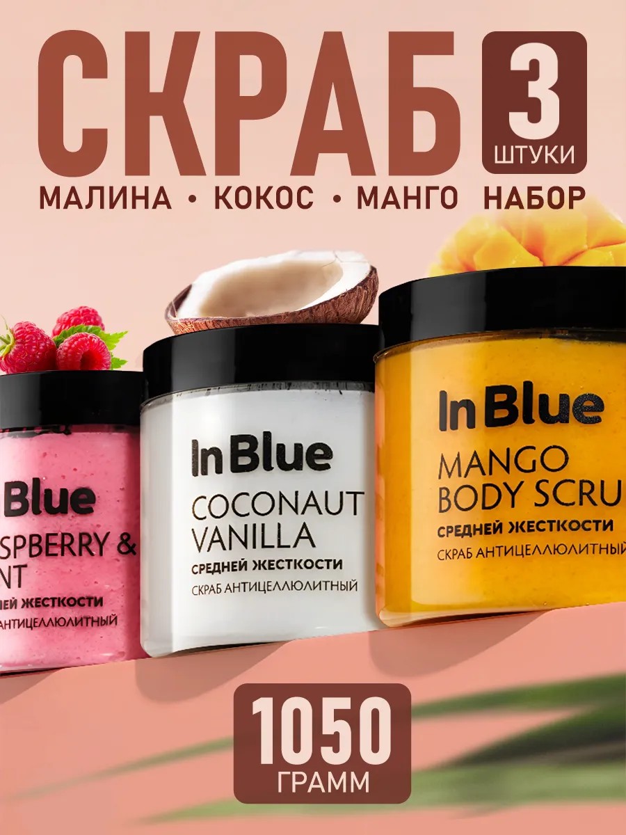 Суперфункциональное трио для комплексного ухода за кожей! Ощути волшебство глубокого очищения и восстанавливающего ухода с IN BLUE. Роскошный скраб для тела с ароматом кокоса и манго подарит твоей коже мягкость, гладкость и невероятное увлажнение. Скработерапия от IN BLUE — это не просто уход за кожей, это удовольствие для всех твоих чувств! Увлажняющий скраб для тела "Малина-Манго-Кокос" превращается из пасты в шелковистый мягкий крем, который увлажняет кожу и помогает сбалансировать выработку кожного сала. Такие мощные ингредиенты, как масло ши, кокосовое масло, масло авокадо и масло сладкого миндаля известный своими питательными жирными кислотами и протеинами, и витамин Е, богатый антиоксидантами, в сочетании разглаживают и увлажняют кожу. Частицы клетчатки в кокосовой стружке раскрывают поры, делают кожу более мягкой и способствуют впитыванию увлажняющих средств. Отшелушивающий скраб для тела с ароматом кокоса и манго — это ваша роскошная находка для ухода за кожей. Его уникальная формула сочетает масла, стружку кокоса, витамин Е и кристаллы морской соли, чтобы эффективно удалять отмершие клетки и стимулировать обновление кожи. Позвольте себе наслаждение и почувствуйте, как ваша кожа становится свежей и обновленной. Если вы являетесь поклонником корейской косметики для ухода за телом и лицом, не спешите покупать скрабы от известных брендов! Скрабы In Blue — это универсальное решение, которое подходит для ухода за кожей рук, ног и лица. Наши натуральные рецепты созданы для разных типов кожи. Ваша кожа получит полноценный уход благодаря универсальной формуле, разработанной специально для комплексного подхода. Набор уходовой косметики для ванной — идеальный подарок для женщин и мужчин. Наслаждайтесь индивидуальным уходом, создавая атмосферу настоящего расслабления у себя дома.