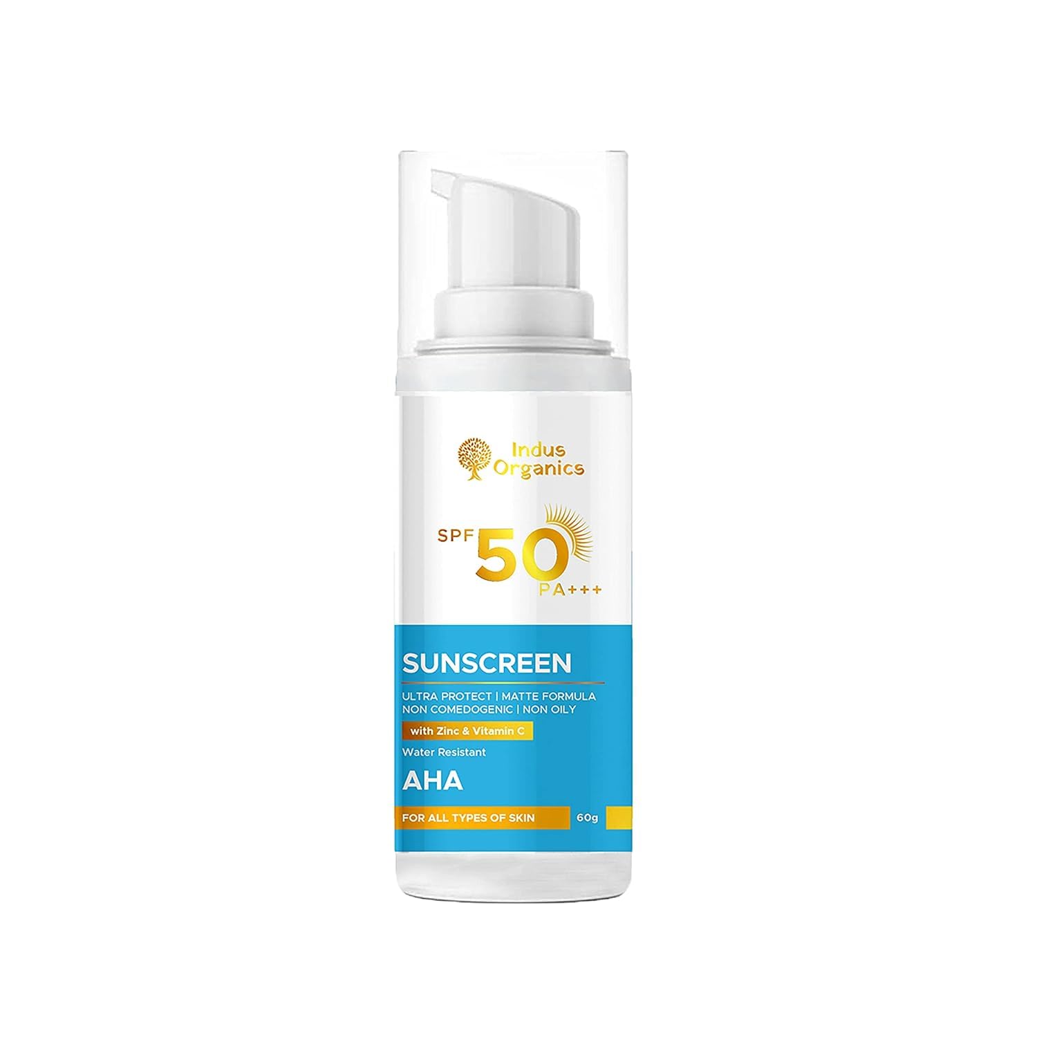 In-dus Organics SPF 50+++ Lightweight With Multi-Vitamins, UV A, UV B & Blue Light Protection,No White Cast, Broad Spectrum Acne Safe For Unisex, 2.02 Fl Oz