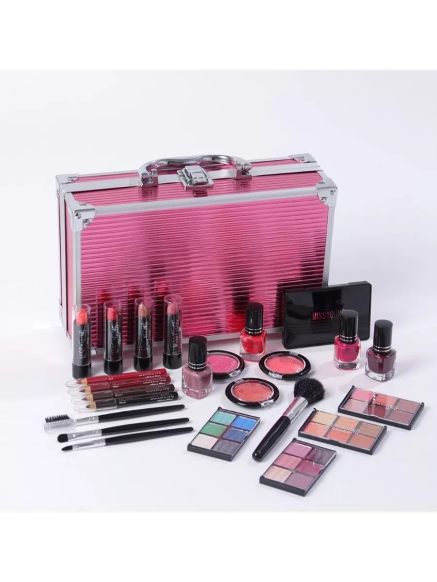 The "Miss Young" No. 1 professional cosmetics gift set will become an indispensable companion for every fashionista. An ideal choice for both teenagers and adults. This beauty case, housed in an elegant suitcase, delights with the expanded functionality of its decorative cosmetics. Pigmented shadows can be used to create vibrant makeup looks and detailed eyebrows. Matte shadows are ideal for a natural look. This cosmetic set includes basic and versatile products suitable for everyday use. It makes a perfect gift for a variety of occasions, whether it's a birthday, New Year's, or Valentine's Day. This glamorous beauty case will delight even the most discerning users, providing convenience and versatility for all occasions.
