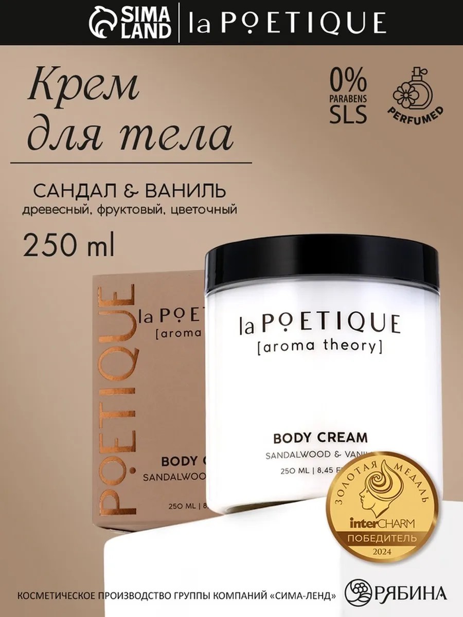 Крем для рук и тела парфюмированный laPOETIQUE объёмом 250 мл - это идеальный выбор для тех, кто ценит качественный уход за кожей. Этот нежный крем обладает восхитительным ароматом сандала и ванили, даря вам ощущение роскоши и комфорта. Разработанный специально для женщин, он обеспечивает питательный и увлажняющий эффект, восстанавливая кожу и придавая ей гладкость. Крем упакован в стильную коробку, что делает его отличным подарком на любое торжество. Тематика подарка универсальна, а приятный бежевый цвет добавляет эстетической привлекательности. В состав продукта входят компоненты, способствующие увлажнению и восстановлению, что делает его незаменимым средством для ежедневного ухода. Оптимальная температура хранения - от +5 до +25 градусов. Позвольте себе насладиться незабываемым ароматом и заботой о своей коже с кремом laPOETIQUE.