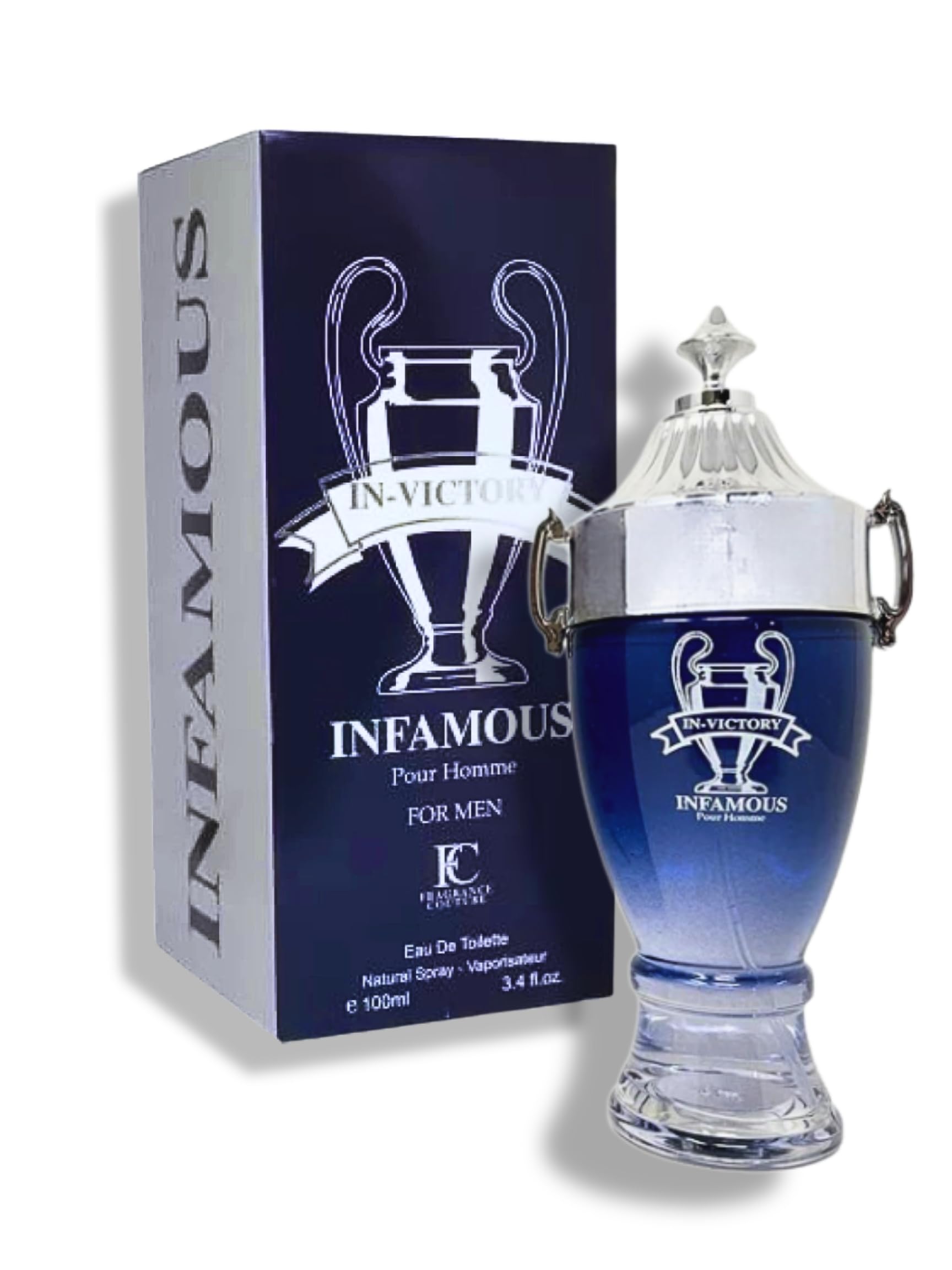 In-Victory Infamous for Men, Eau de Toilette is a Oriental Woody fragrance for men. Top notes are Lavender, Cardamom and Black Pepper; middle notes are Incense and Patchouli; base notes are Vanilla Pod and Tonka Bean.In-Victory Infamous for Men, Eau de Toilette is a Oriental Woody fragrance for men. Top notes are Lavender, Cardamom and Black Pepper; middle notes are Incense and Patchouli; base notes are Vanilla Pod and Tonka Bean. In-Victory Infamous for Men, Eau de Toilette designer cologne is an alternative fragrance and is in no way affiliated with the mentioned brand name. All product and company names are trademarks or registered trademarks of their respective holders. Use of them does not imply any affiliation with or endorsement by them. Fragrances are less expensive versions of the genuine/original brand owned by their rightful owners. Impression (version/inspired) fragrances are in no way connected with the trademark or trademark owners mentioned on the packagin. Whether you opt for the enduring elegance of perfume or the refreshing vivacity of cologne, these fragrant masterpieces are designed to accentuate your personality and make an unforgettable impression. Share your pleasure with someone else and treat that special person. It is the perfect gift for Father's Day, Valentine's Day, Christmas, a Birthday, Anniversary, Graduation, Business Gifts, any Holiday, or just as a gift to yourself. In order to get the most out of a fragrance and for its scent to be fully revealed, it is necessary to apply it in appropriate places, in the areas where the blood circulation is most superficial. Therefore, put a drop of perfume on the inside of the wrist, on the nape of the neck, in the crook of the elbows and knees, on the temples, at the base of the neck and chest. Spray a little under the earlobes and not behind the ears as is often believed, as the epidermis, especially oily in this place, tends to distort the aroma.