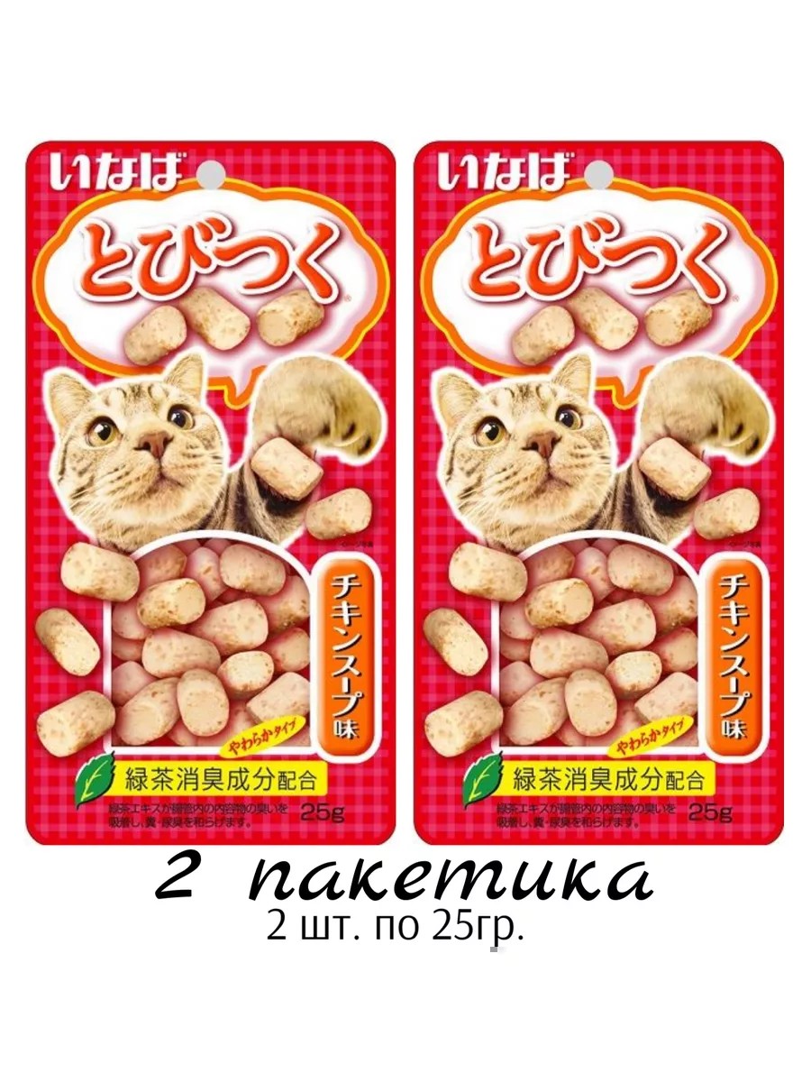 КомплектацияЗапеченное лакомство INABA Tobitsuko для кошек со вкусом куриного бульона 2шт по 25гр