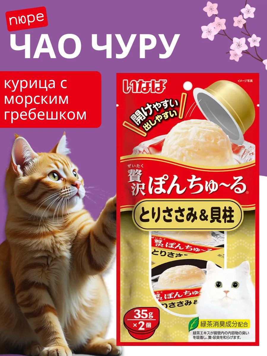 INABA Ciao Pon Churu Суфле-лакомство для кошек - Куриное филе и морской гребешок