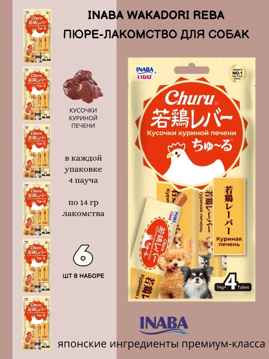Побалуйте своего питомца нежным пюре Churu Wakadori Reba от японского бренда Inaba - это натуральное лакомство из куриной печени, богатое железом и витамином А. Идеально для поощрения, дрессировки или как вкусная добавка к основному корму!
