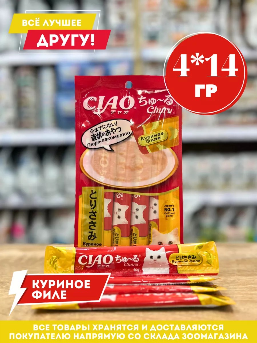 Inaba Ciao Churu лакомство-пюре для взрослых кошек с куриным филе - 14 г х 4 шт