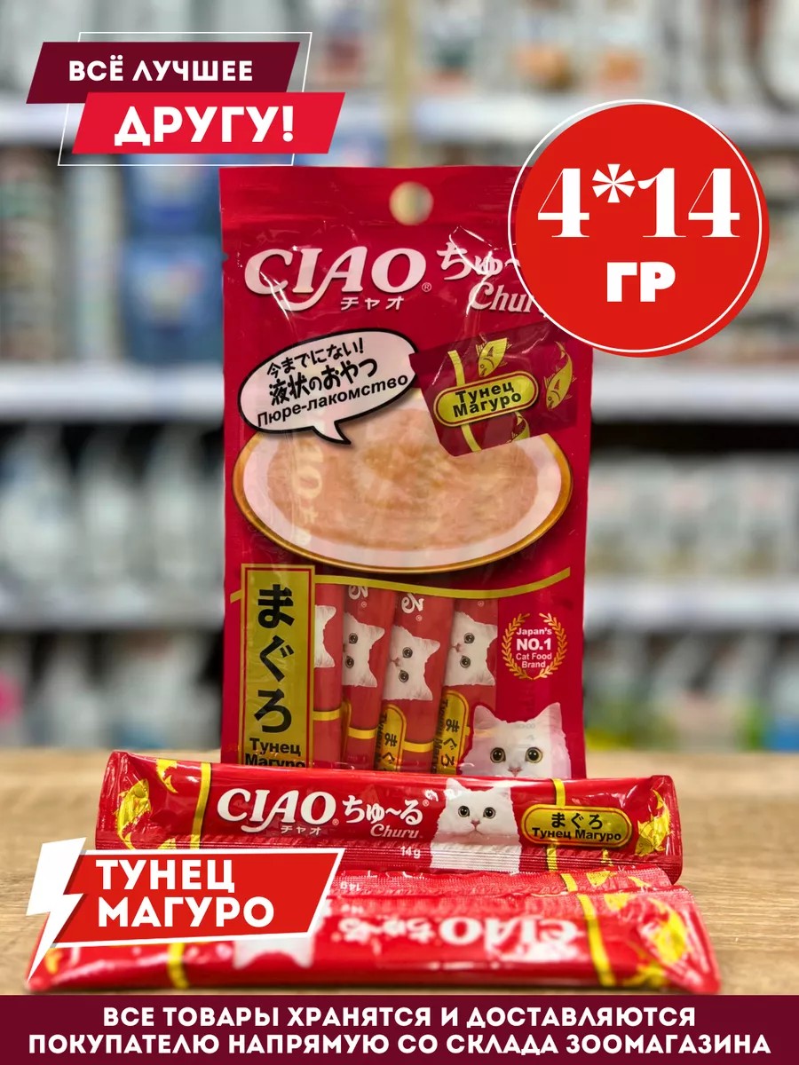 Inaba Ciao Churu лакомство-пюре для взрослых кошек с тунцом магуро - 14 г х 4 шт