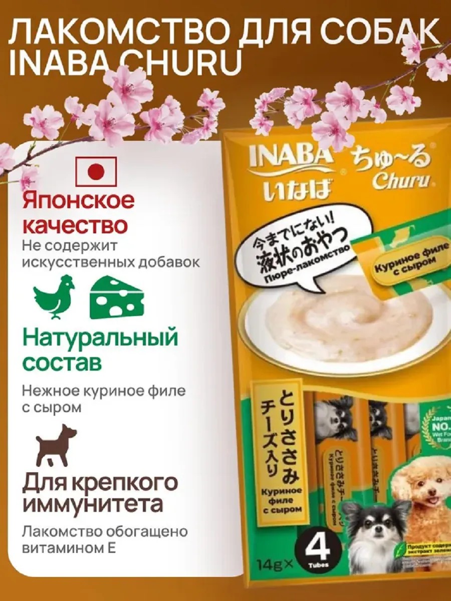 Inaba Лакомство-пюре для собак куриное филе с сыром 14г*4шт.