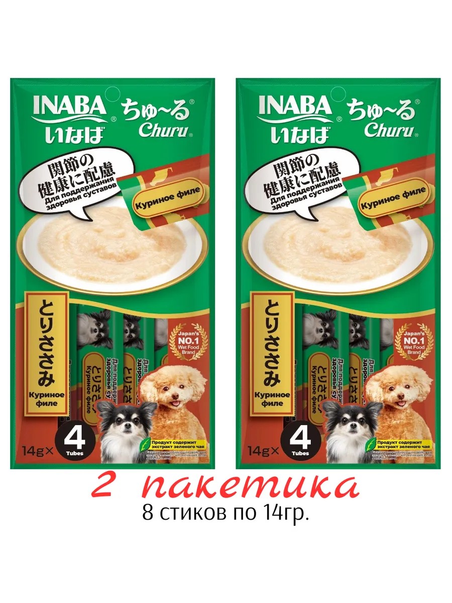 | Комплектация | Крем-лакомство INABA Churu пюре для собак Куриное филе для здоровья суставов 8шт по 14гр |