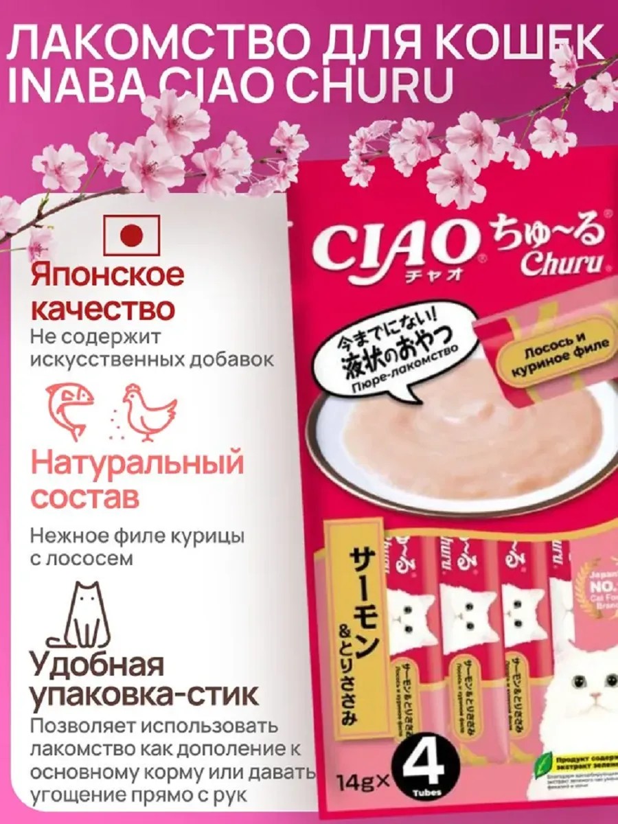 Лакомство-пюре для кошек лосось и куриное филе 14г*4шт